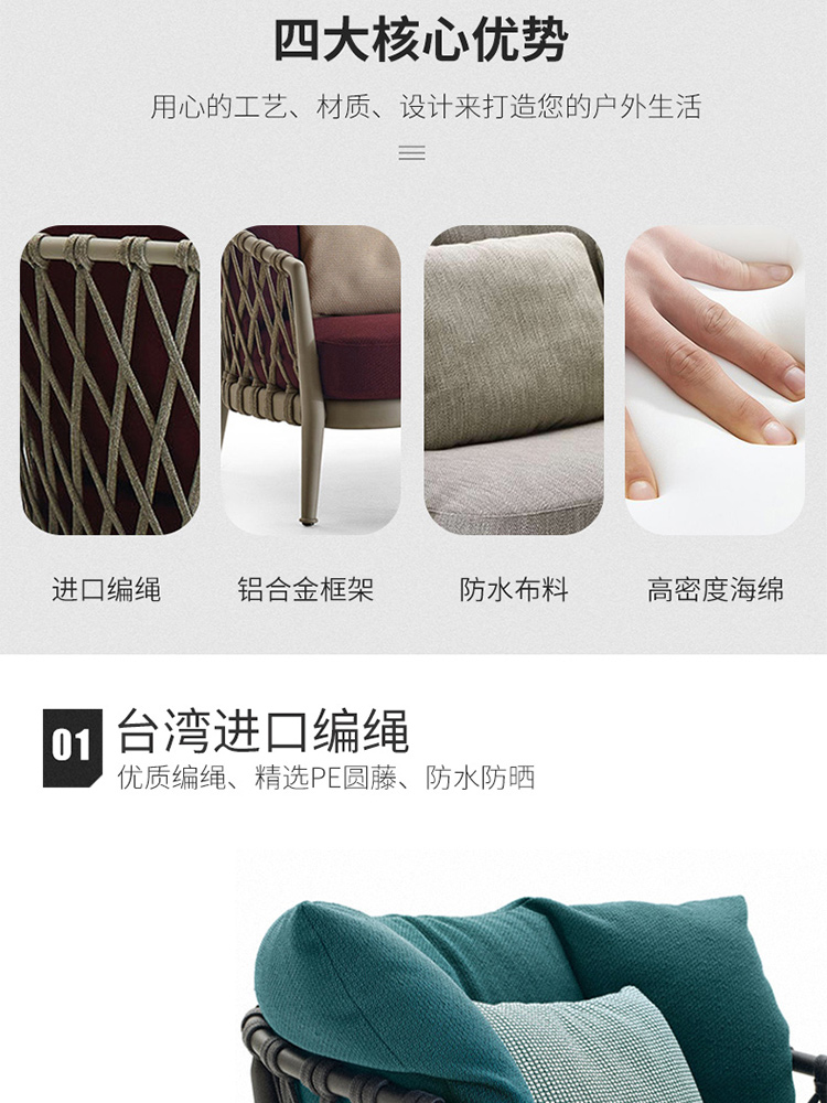 Sofa ngoài trời chống thấm nước và chống nắng nhà thiết kế biệt thự sân vườn mây sofa sân thượng giải trí ngoài trời đồ nội thất mây