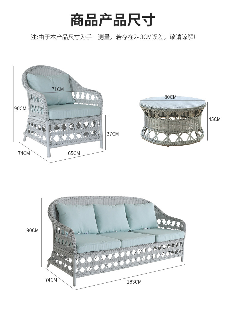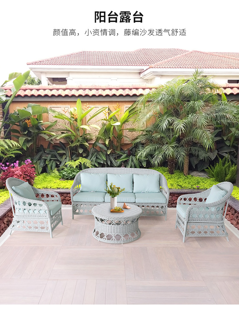 Sofa ngoài trời sân vườn mây sofa nội thất biệt thự ngoài trời ghế mây sofa bàn cà phê chống thấm nước và chống nắng