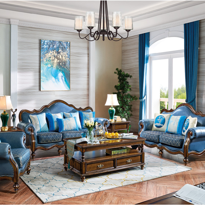 Sofa nhỏ kiểu Mỹ phòng khách bọc da 123 nội thất kết hợp Ghế đôi châu Âu đơn giản vải hoàn chỉnh kết hợp với căn hộ kích thước bằng gỗ nguyên khối