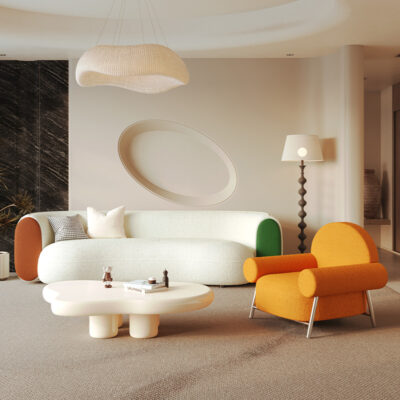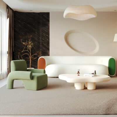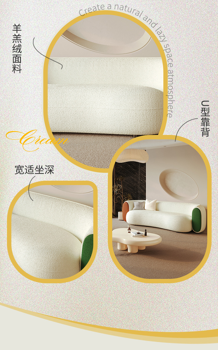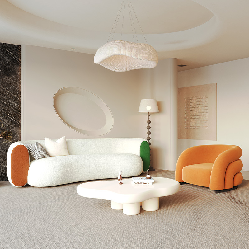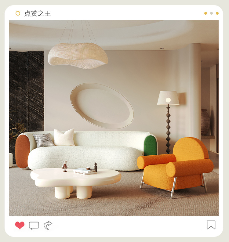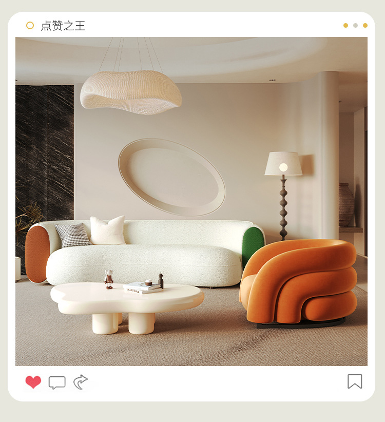 Sofa nhung cừu bàn cà phê kết hợp căn hộ nhỏ phòng khách thẩm mỹ viện cửa hàng quần áo khu vực nghỉ ngơi ghế sofa cong màu đỏ