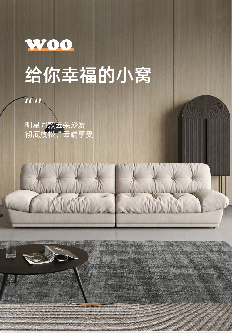 Sofa phật sơn mây kem gió sofa hiện đại nhỏ gọn sofa vải phòng ngủ hàng thẳng kem gió sofa phòng khách