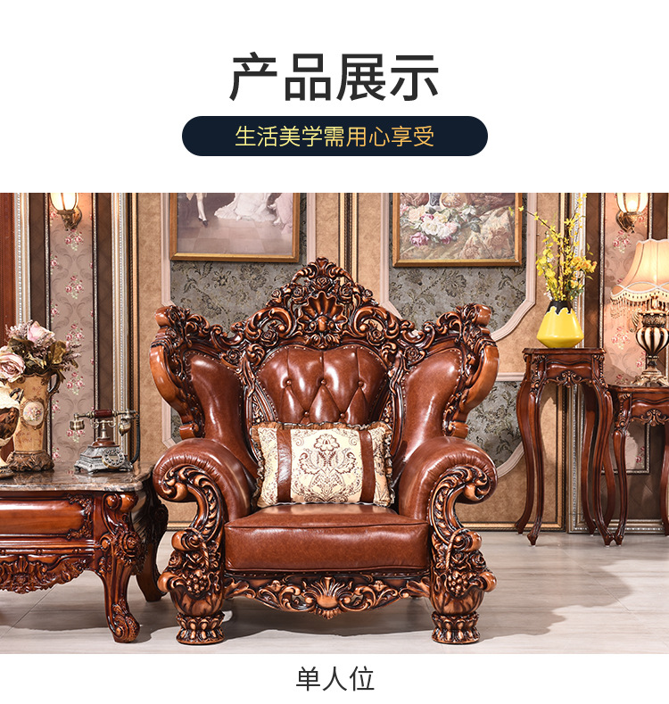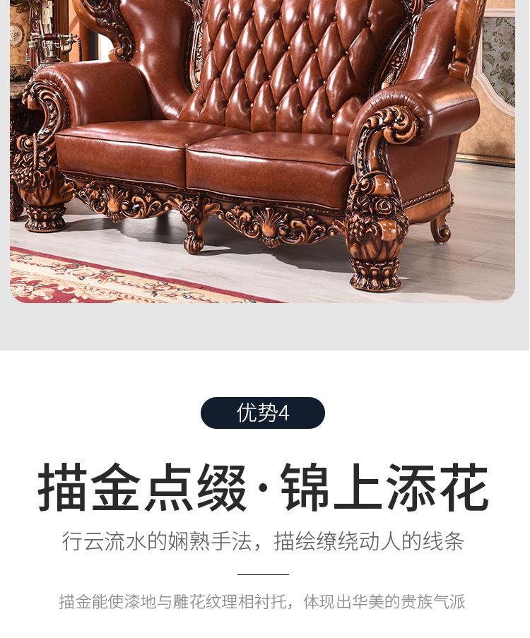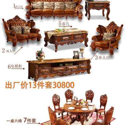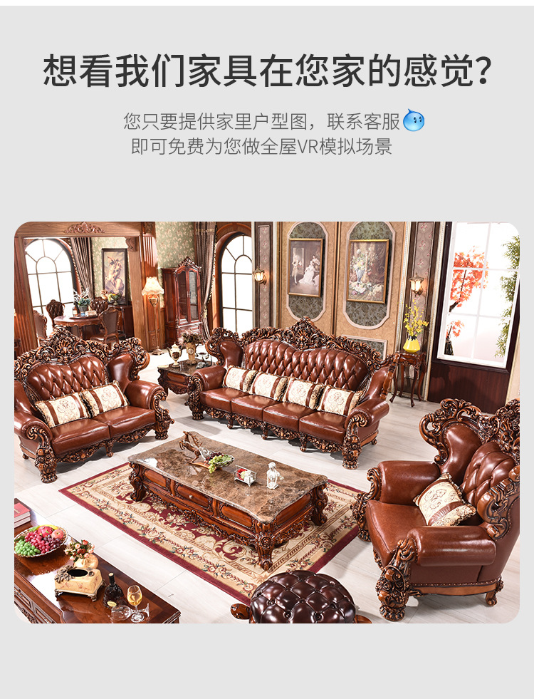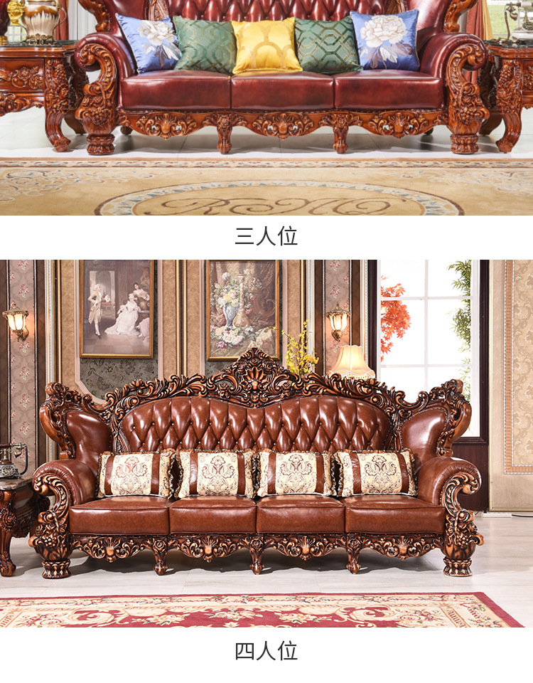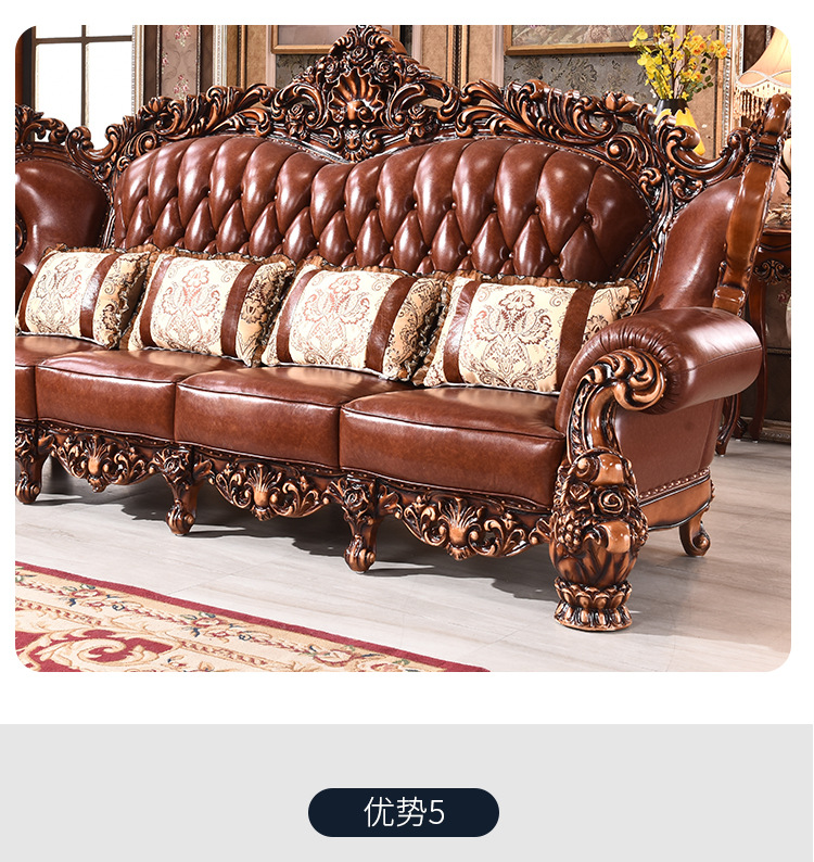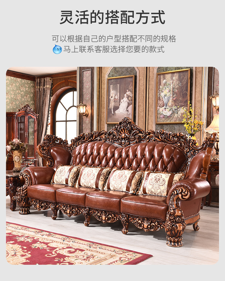 Sofa phong cách châu Âu 123 kết hợp sofa da bò cao cấp 124 lớp đầu biệt thự Nội thất cao cấp quy mô lớn của Mỹ