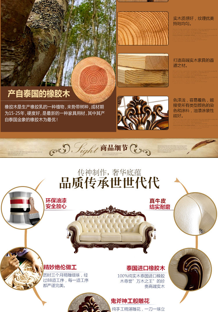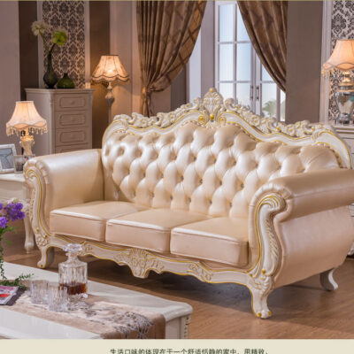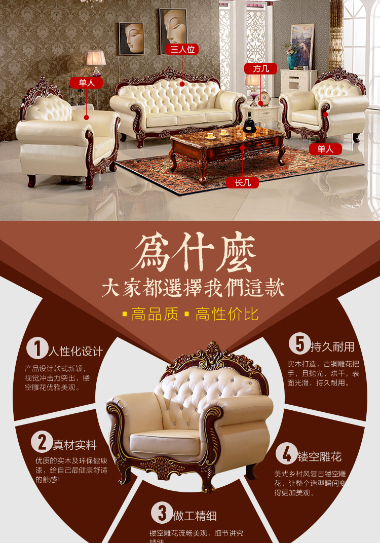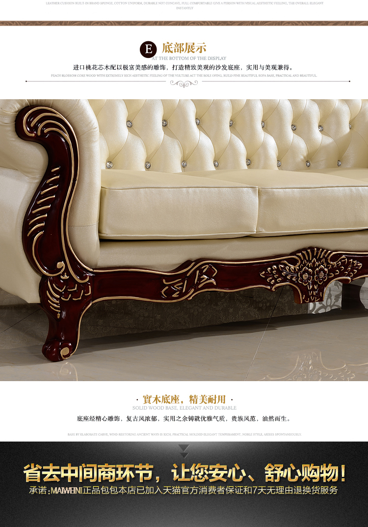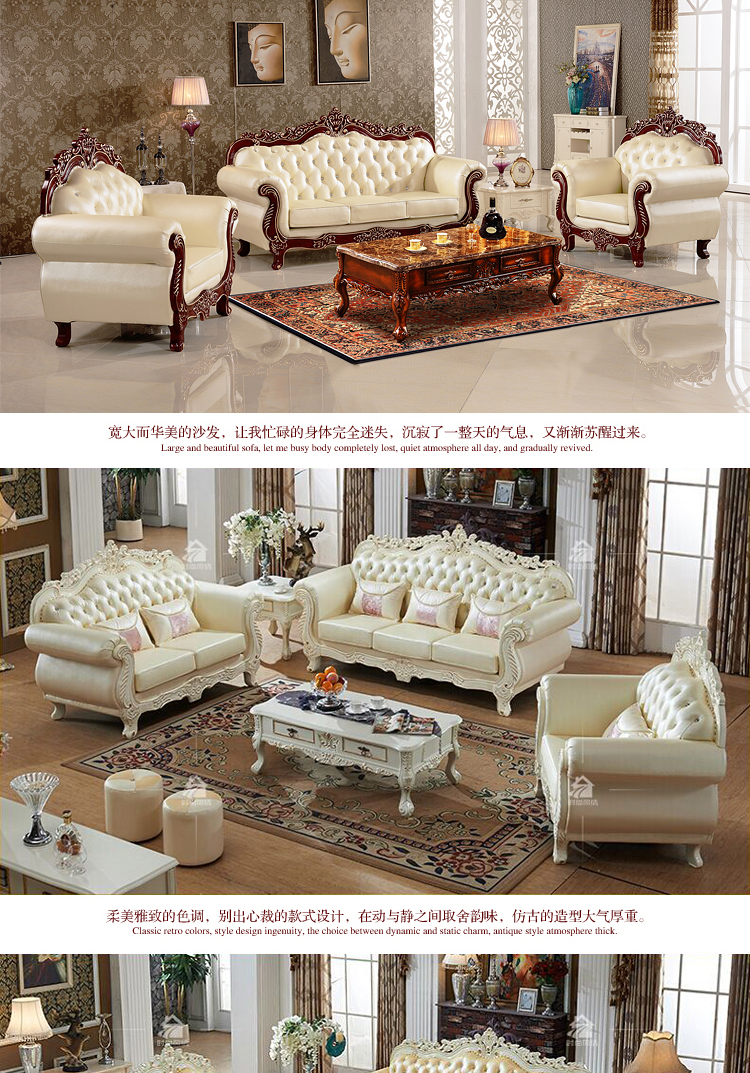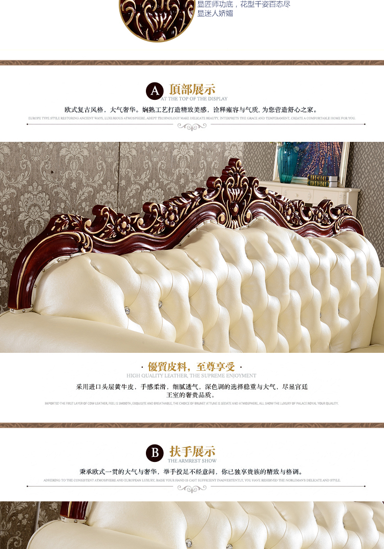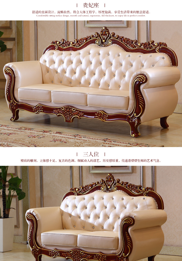 Sofa phong cách châu Âu nhà cứng chạm khắc gỗ nguyên khối kích thước kết hợp phòng khách đơn giản lớp trên cùng đồ nội thất da bò kiểu Mỹ