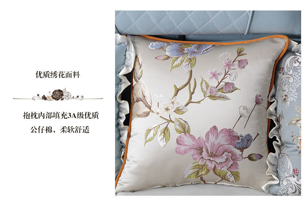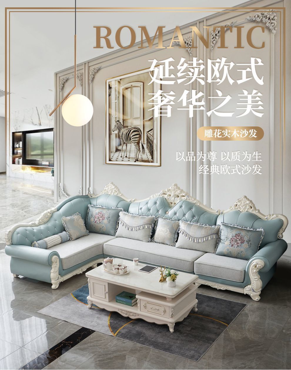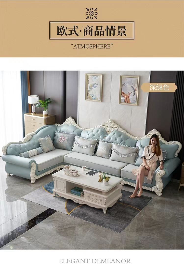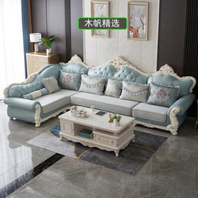 Sofa phong cách châu Âu phòng khách khoa học và công nghệ kích thước vải căn hộ đơn giản Sofa châu Âu chạm khắc gỗ nguyên khối hình chữ L có thể tháo rời và có thể giặt được Sofa hình chữ U