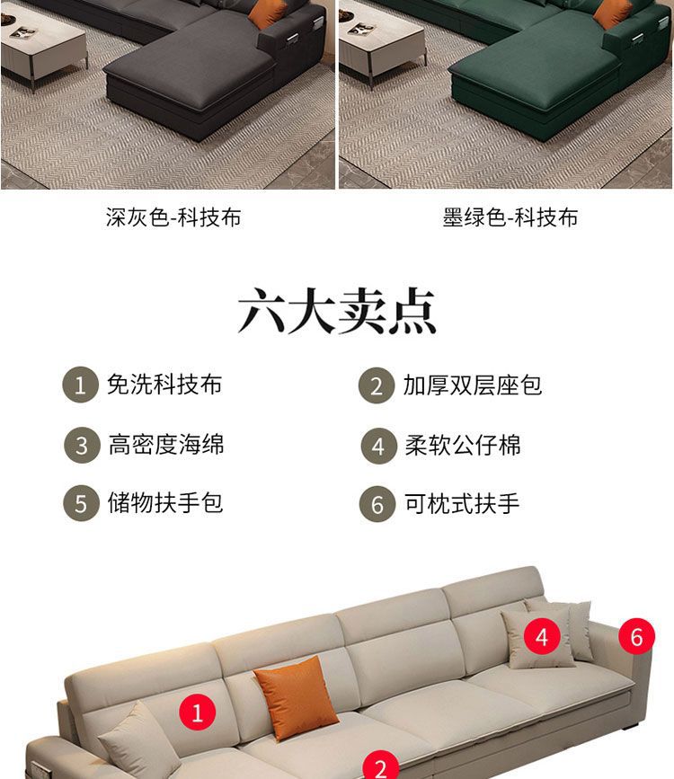 Sofa phòng khách khoa học và công nghệ kích thước vải sofa căn hộ sofa vải hiện đại tối giản phong cách kem lưới màu đỏ hoàng phi sofa vải lanh