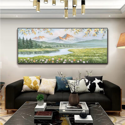 Sofa phòng khách nền tường trang trí tranh khí quyển vẽ tay phong cảnh sơn dầu phòng ngủ bức tranh tường mô hình phòng ánh sáng sang trọng tranh treo