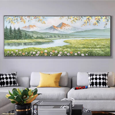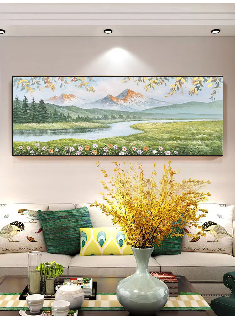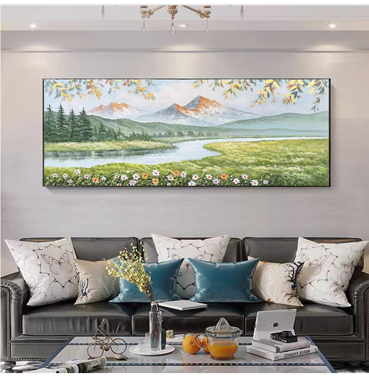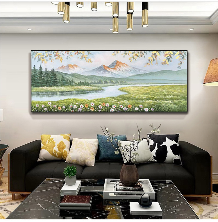 Sofa phòng khách nền tường trang trí tranh khí quyển vẽ tay phong cảnh sơn dầu phòng ngủ bức tranh tường mô hình phòng ánh sáng sang trọng tranh treo