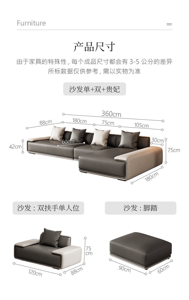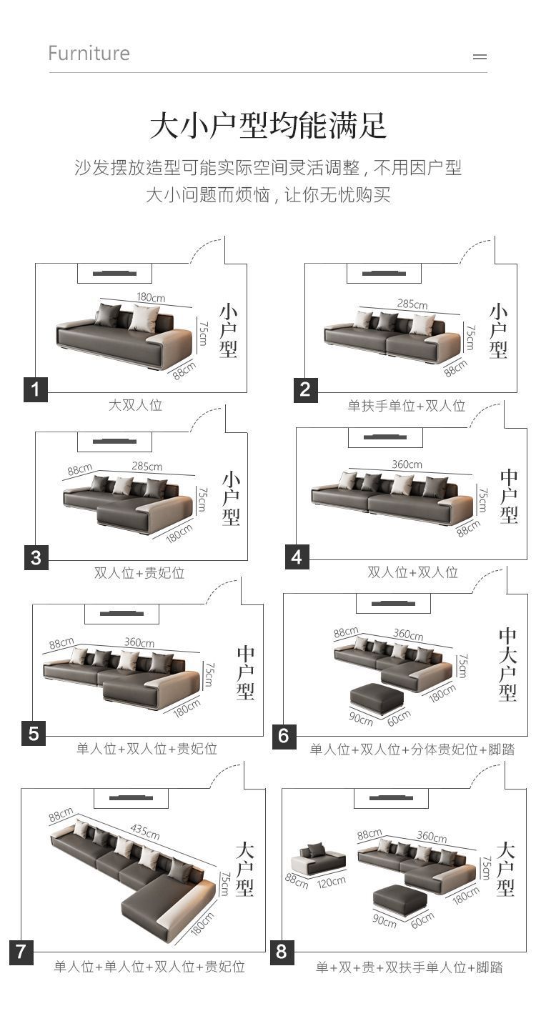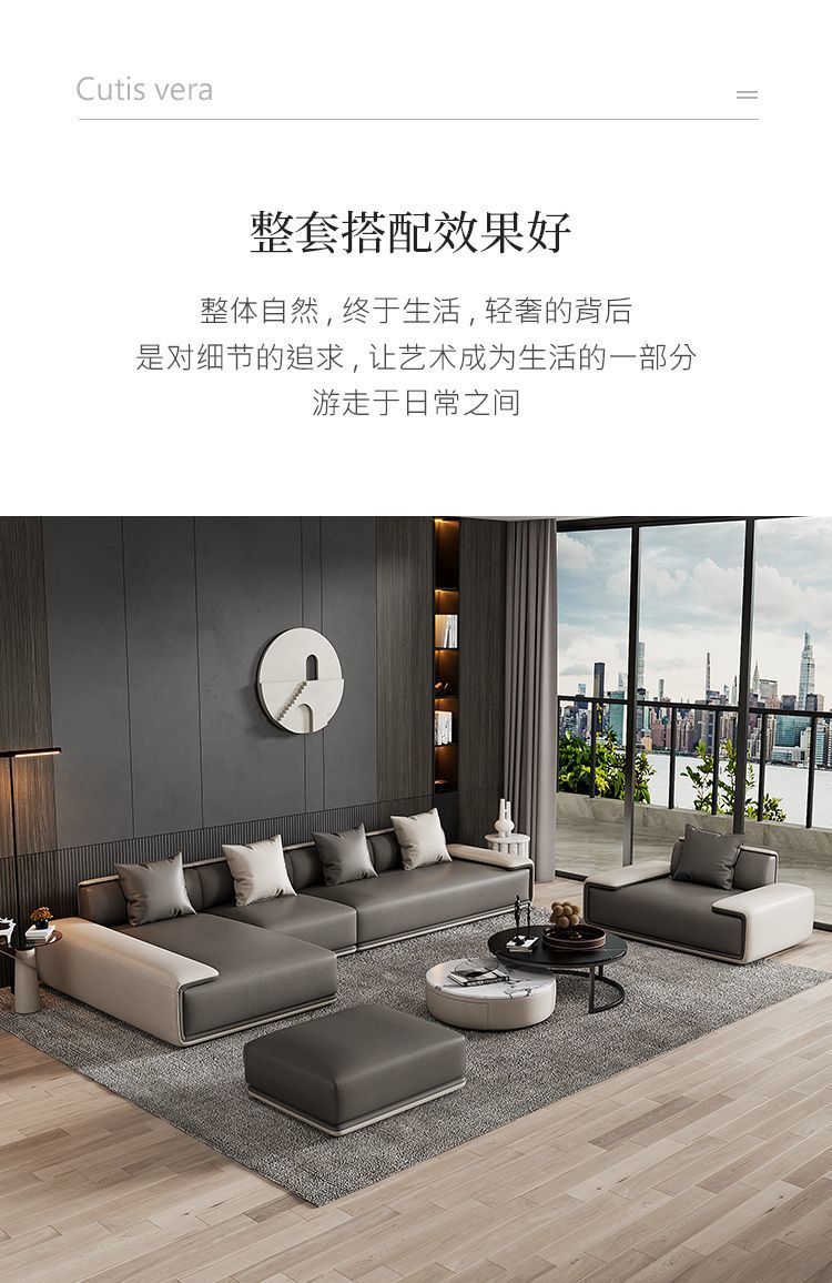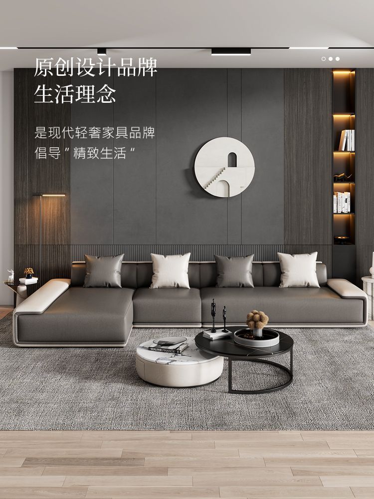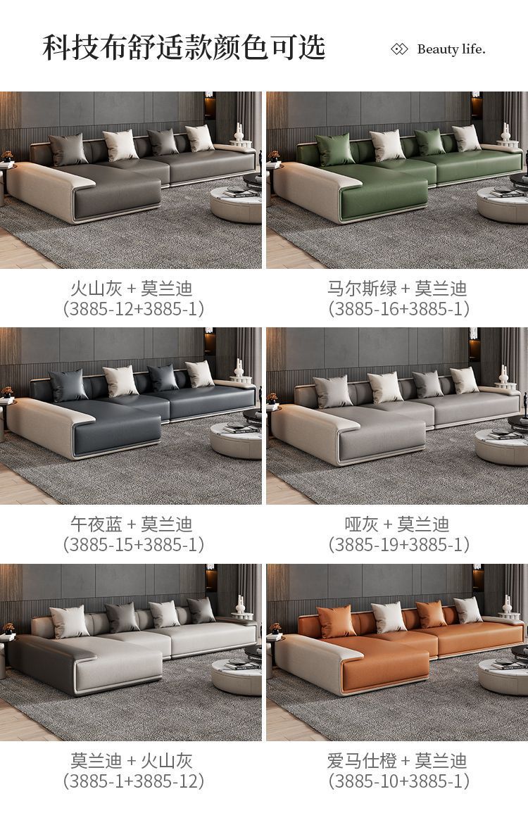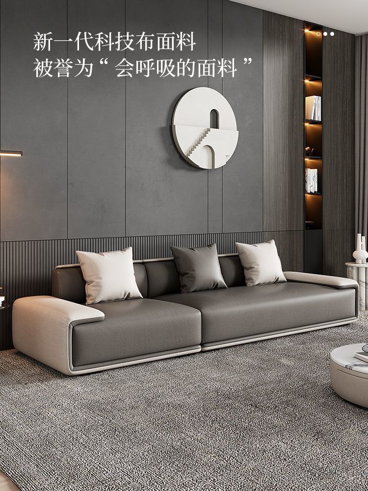 Sofa vải công nghệ Ý hiện đại tối giản nhẹ nhàng sang trọng phòng khách chung cư lớn nhỏ hàng thẳng kết hợp ghế đôn cao su non