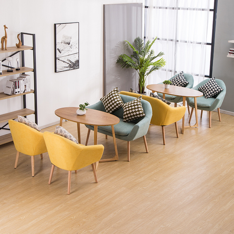 Sofa vải gỗ chắc chắn bàn ăn và ghế kết hợp giải trí sân cafe tiệm bánh trà sữa ghế đơn giản sáng tạo