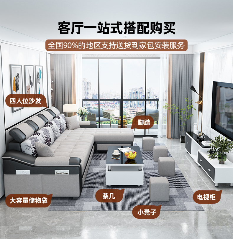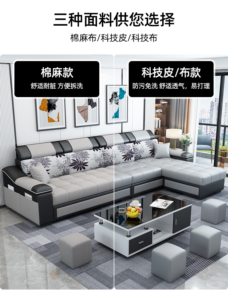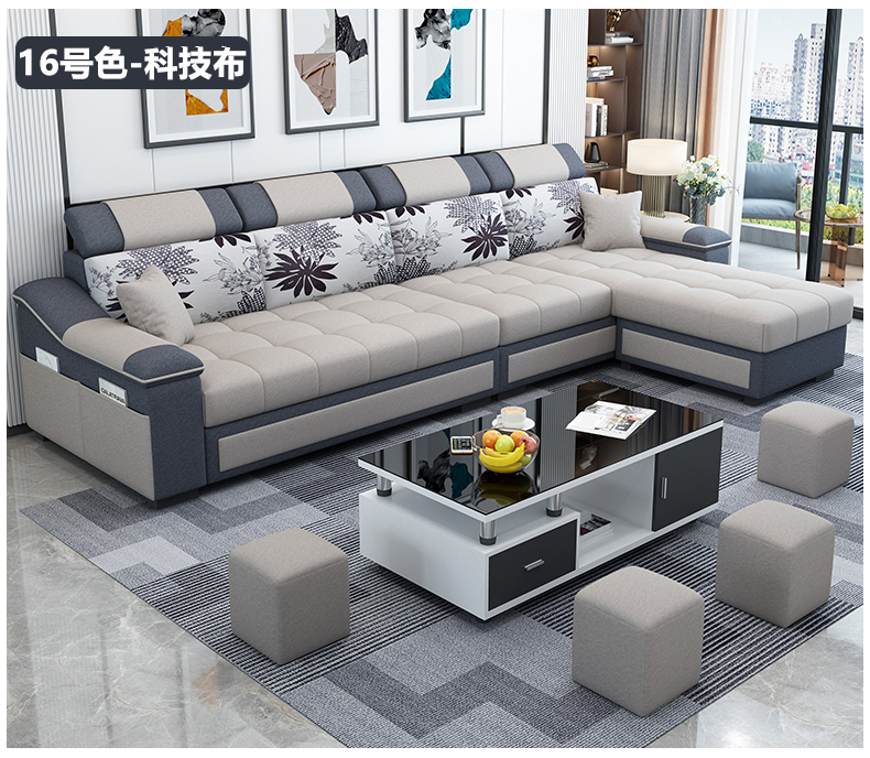 Sofa vải hiện đại tối giản đẹp sang trọng phòng khách cho thuê phòng căn hộ nhỏ công nghệ vải kết hợp đồ nội thất gia đình