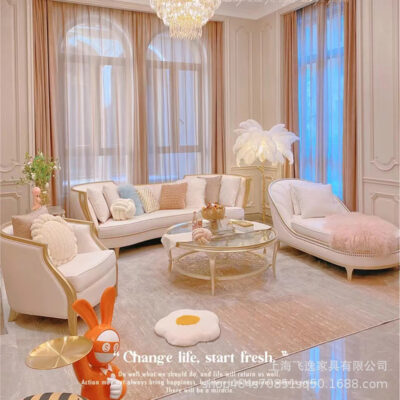 Sofa vải Mỹ ghế tựa lười đơn giản hiện đại gỗ nguyên khối Châu Âu bàn cà phê cao cấp nội thất phòng khách vừa và nhỏ