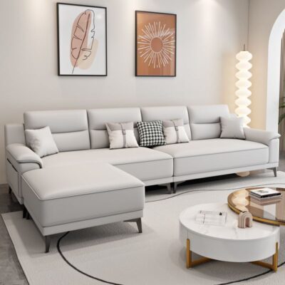 Sofa vải new vải phòng khách lớn nhỏ phong cách Ý màu kem sang trọng nhẹ nhàng hoàn thiện nội thất phòng khách