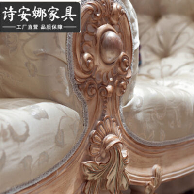 Sofa vải phong cách châu Âu Ghế dài vải tân cổ điển sang trọng Nội thất ghế kẹo bơ cứng gỗ cứng phong cách châu Âu