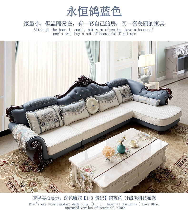Sofa vải phong cách châu âu phòng khách đơn giản ghế dài góc kích thước căn hộ kết hợp sofa vải công nghệ mới có thể tháo rời và giặt