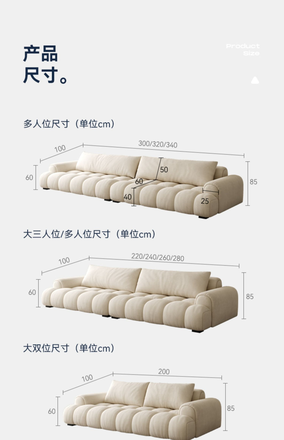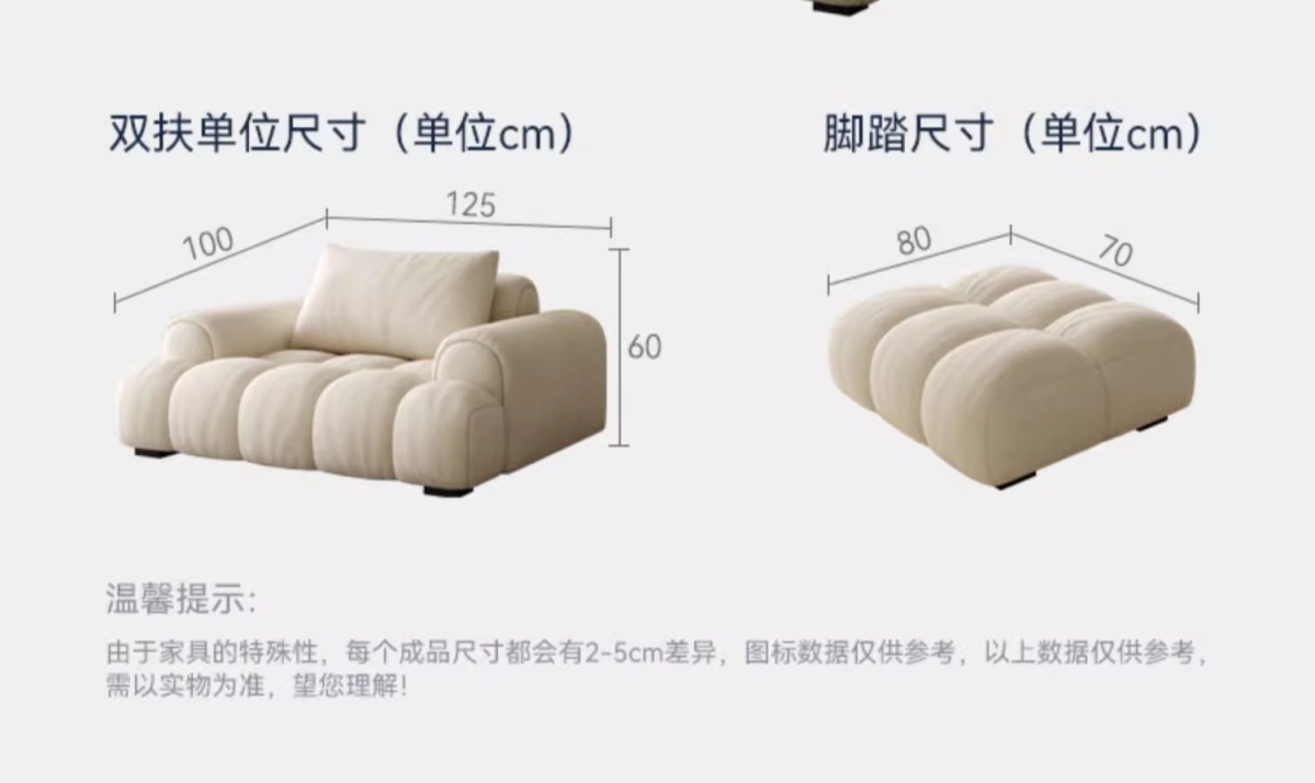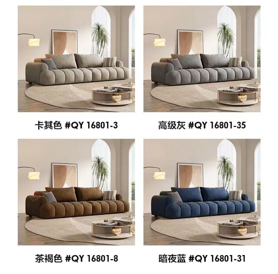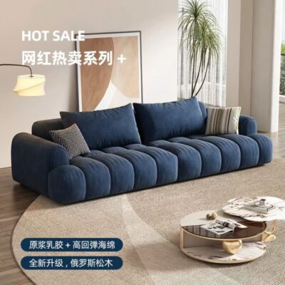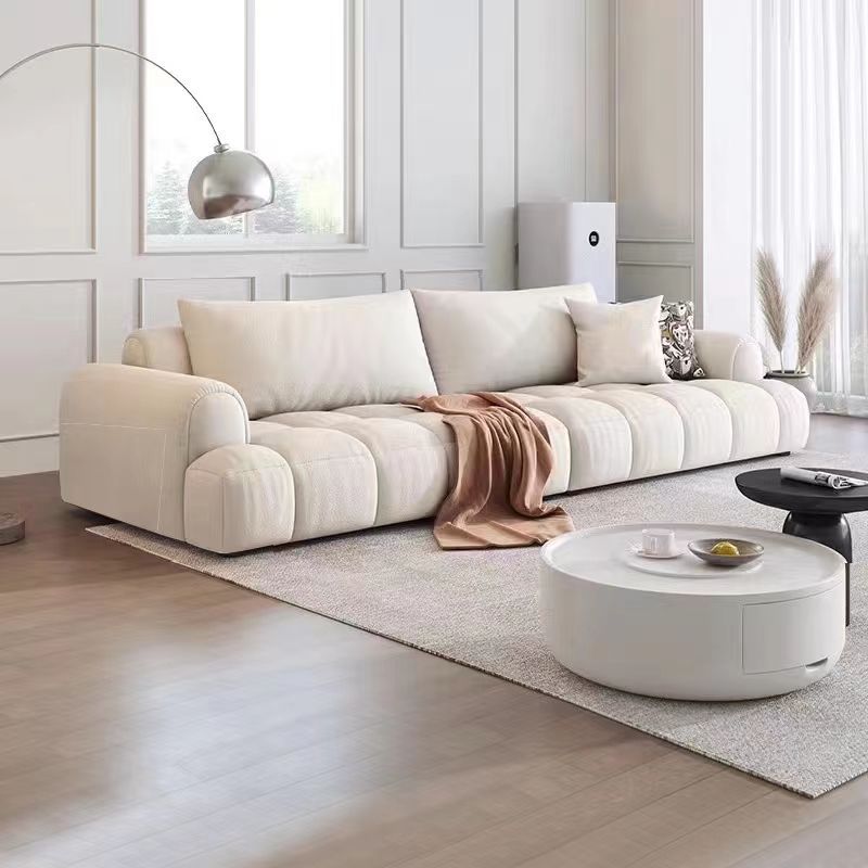 Sofa vải phồng kem Pháp căn hộ nhỏ phòng khách tối giản kẹo bông thiết kế thẳng hàng ba người