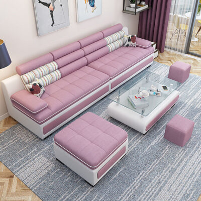 Sofa vải phòng khách chung cư nhỏ trang trí hoàn thiện đơn giản hiện đại tiết kiệm phòng cho thuê kết hợp bộ bàn ghế có thể tháo rời và giặt sạch