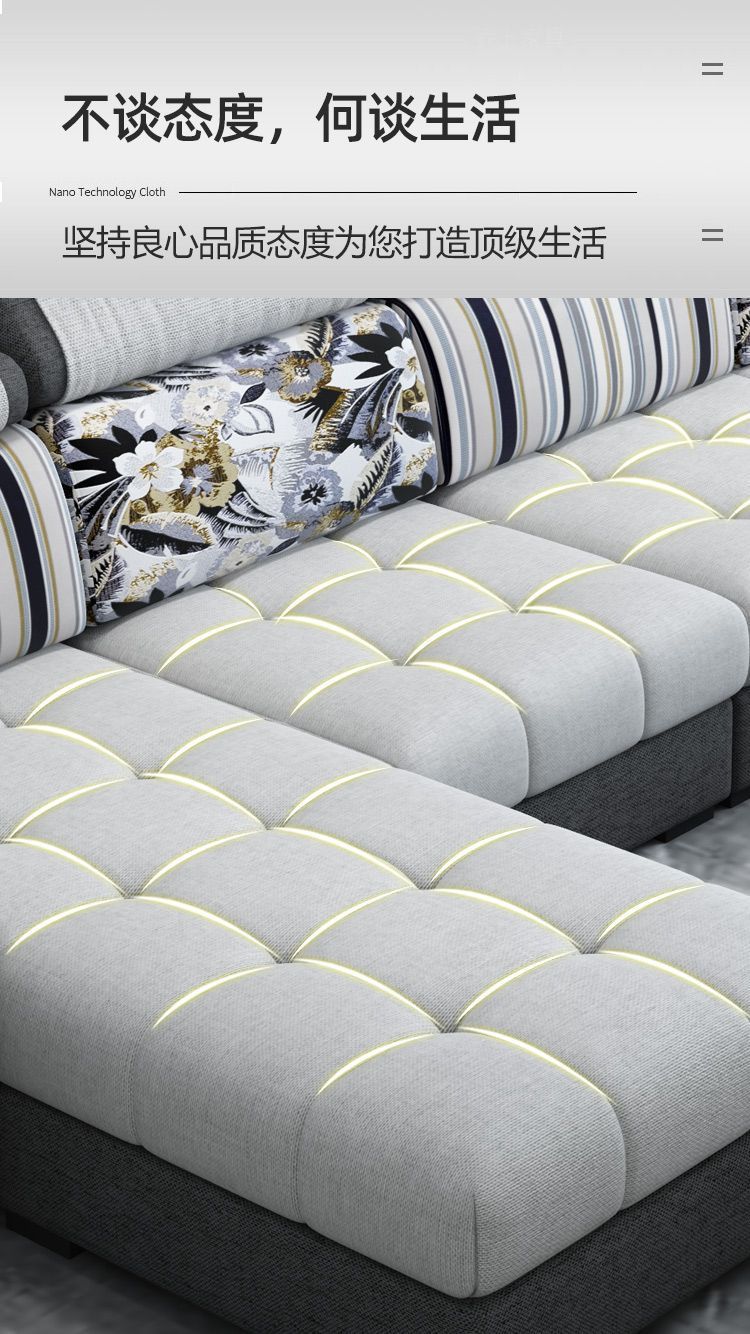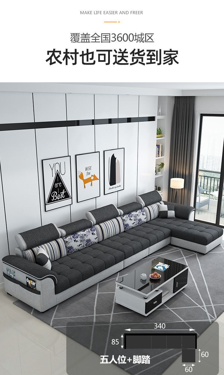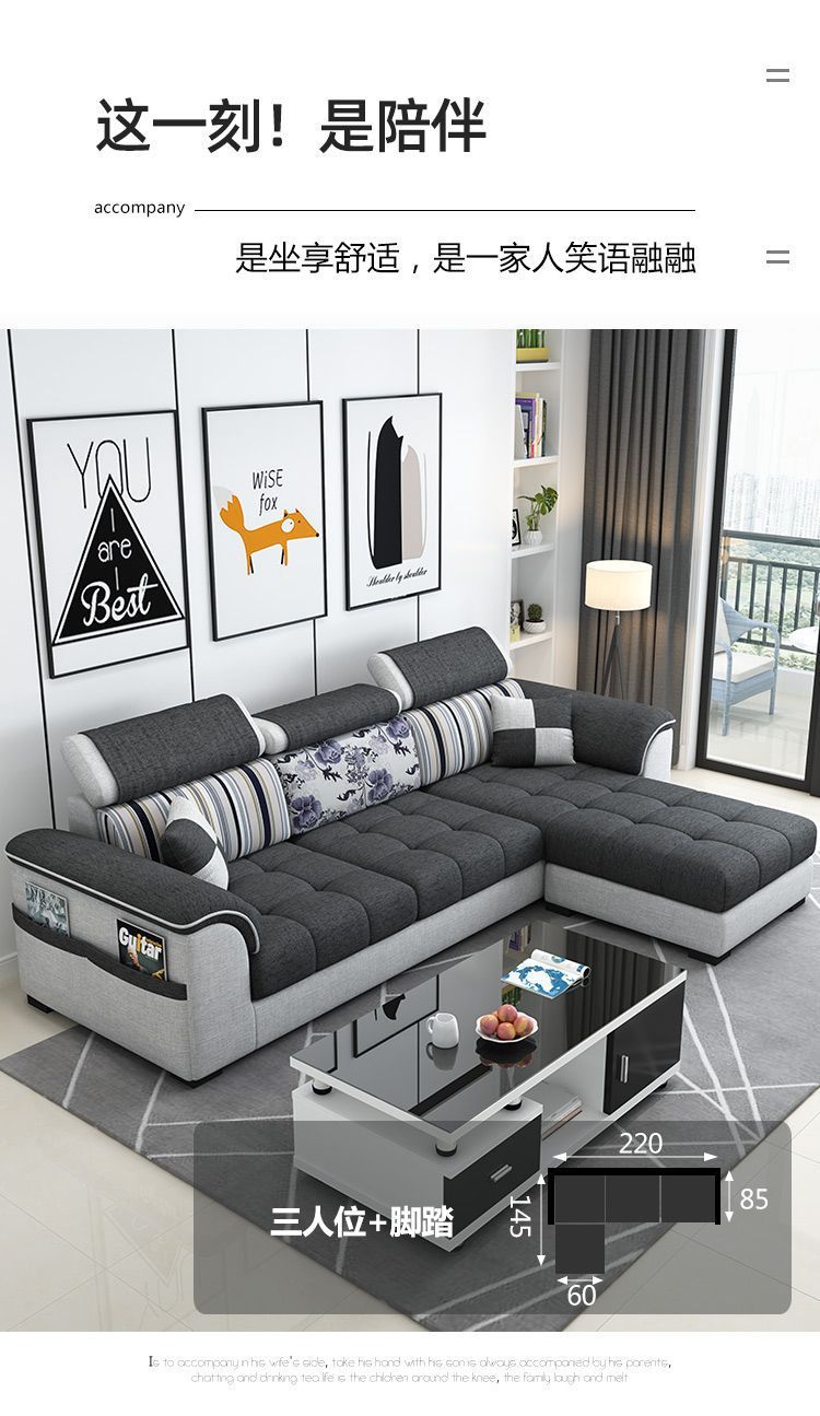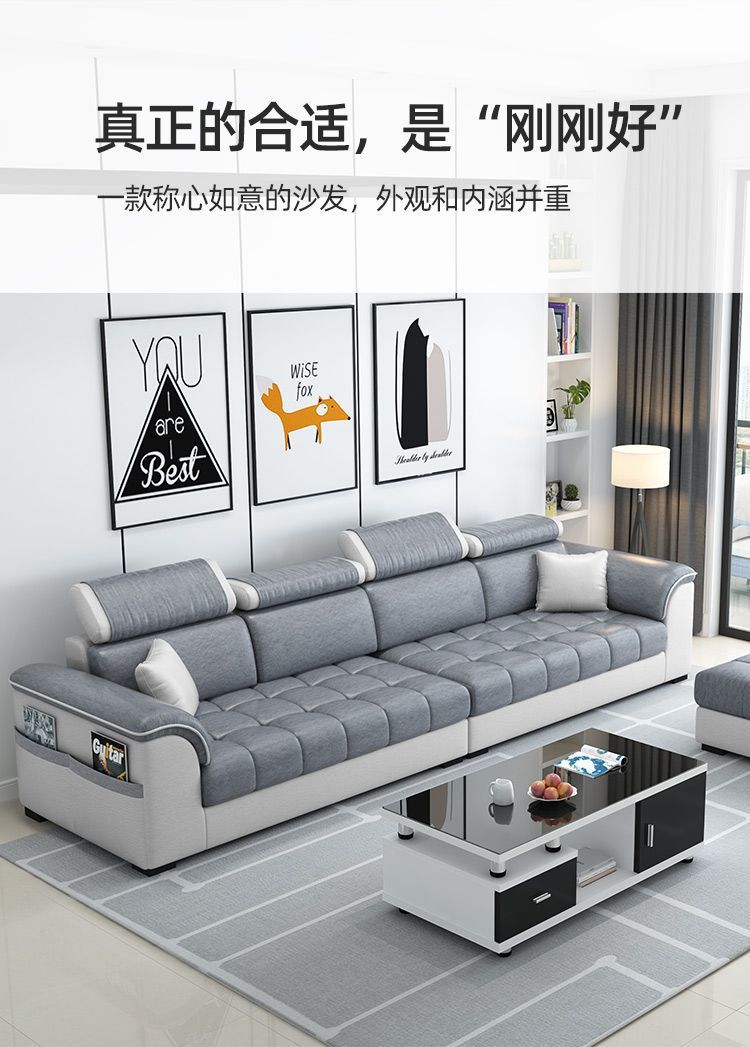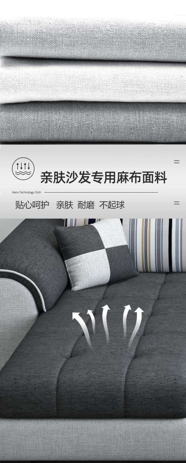 Sofa vải sofa phòng khách ba chỗ ngồi hàng thẳng công nghệ tối giản hiện đại vải sofa hộ gia đình nông thôn