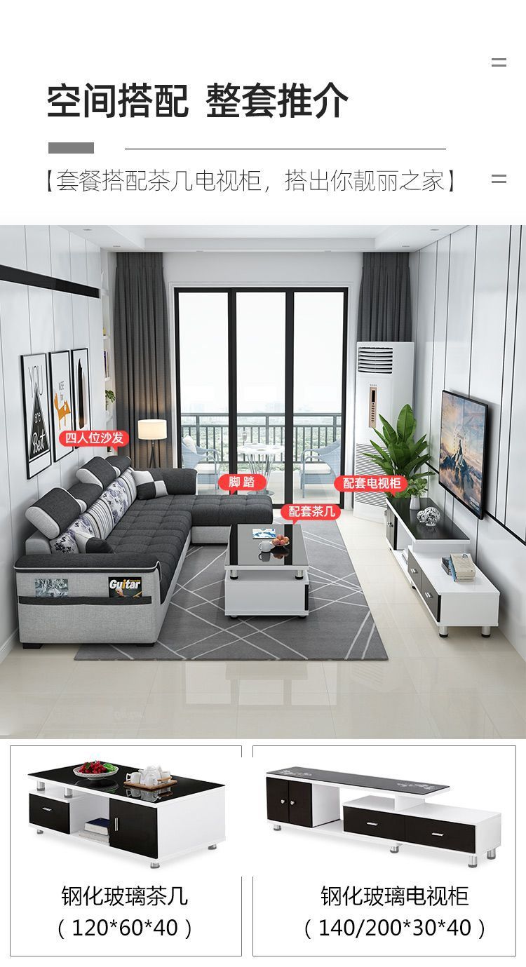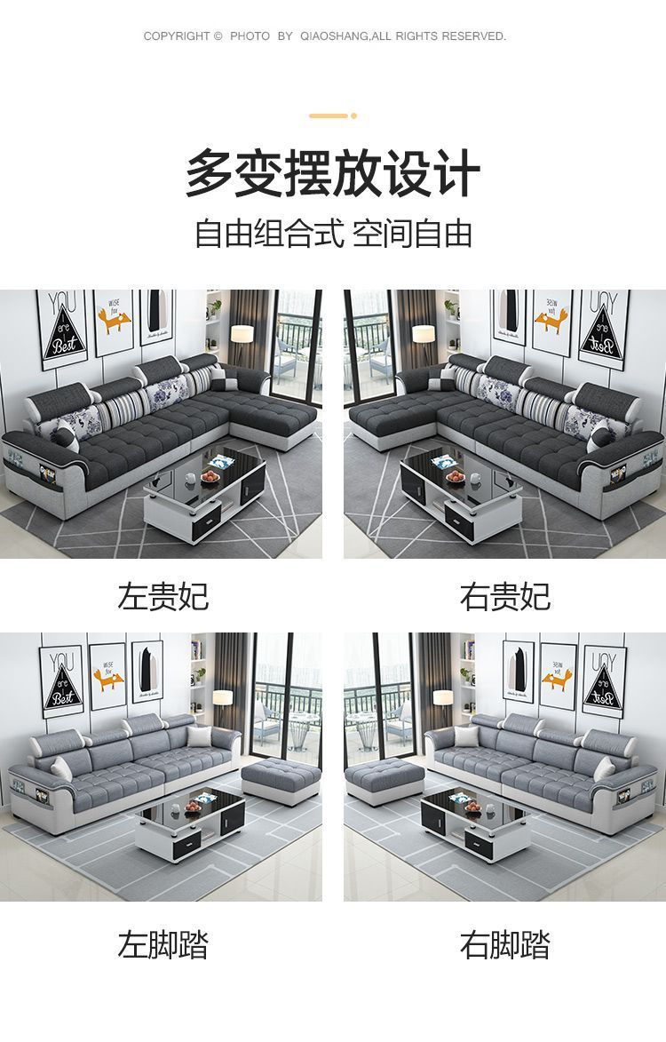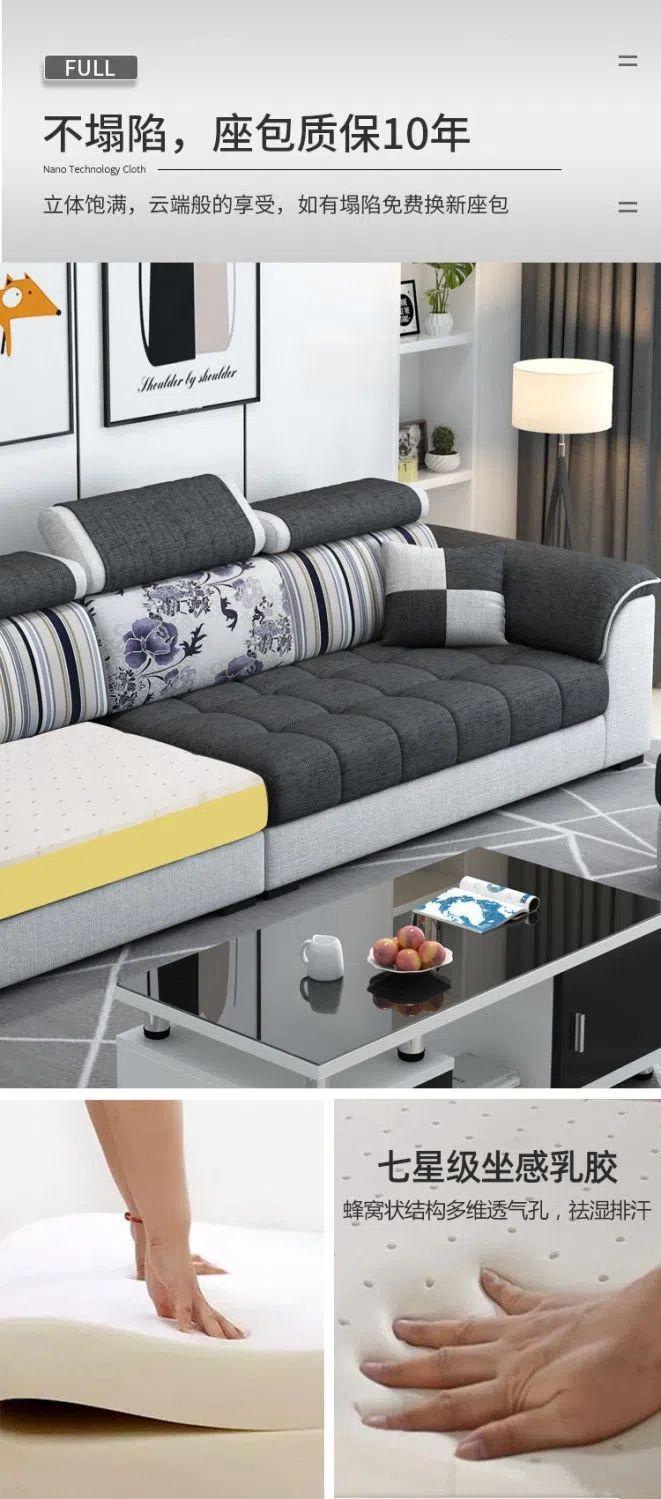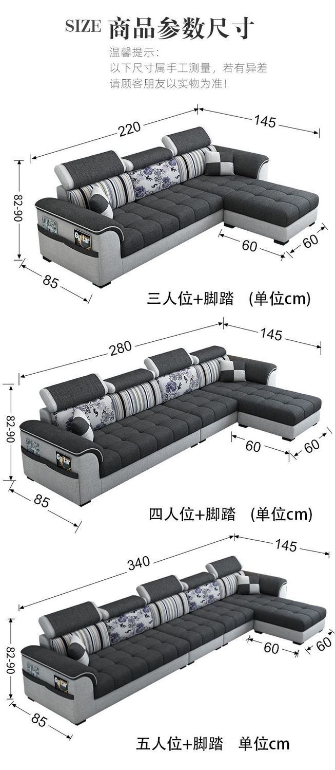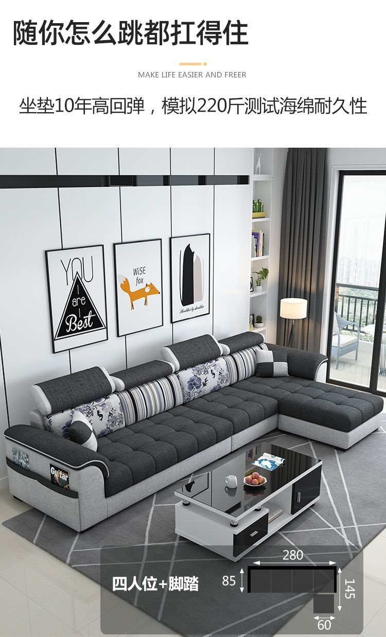 Sofa vải sofa phòng khách ba chỗ ngồi hàng thẳng công nghệ tối giản hiện đại vải sofa hộ gia đình nông thôn