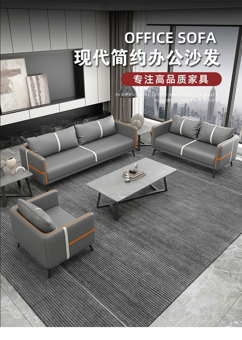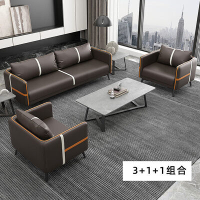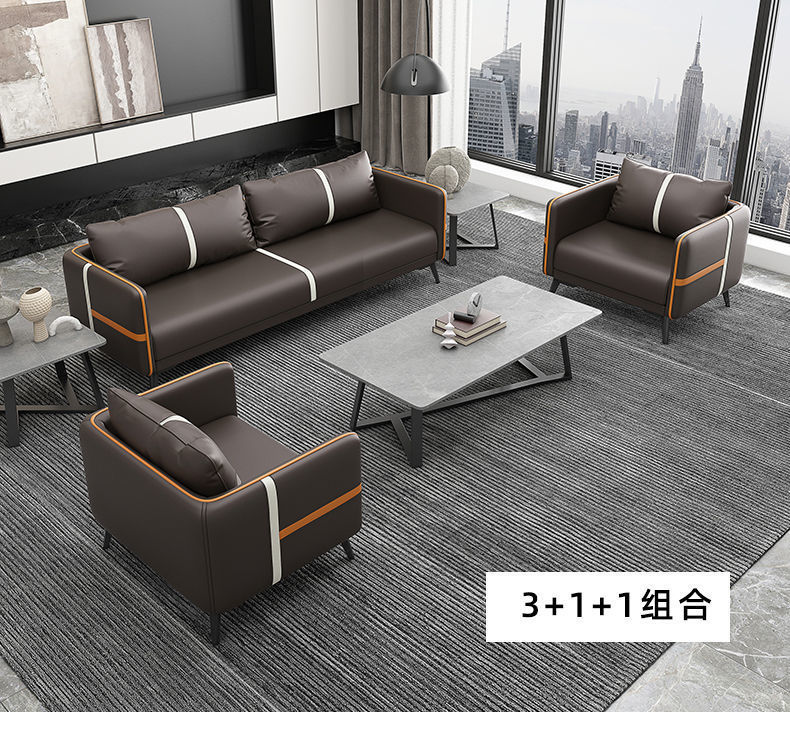 Sofa văn phòng bàn cà phê kết hợp bộ phòng tiếp tân nhỏ đơn giản hiện đại kinh doanh tiếp tân đàm phán ghế sofa ba người