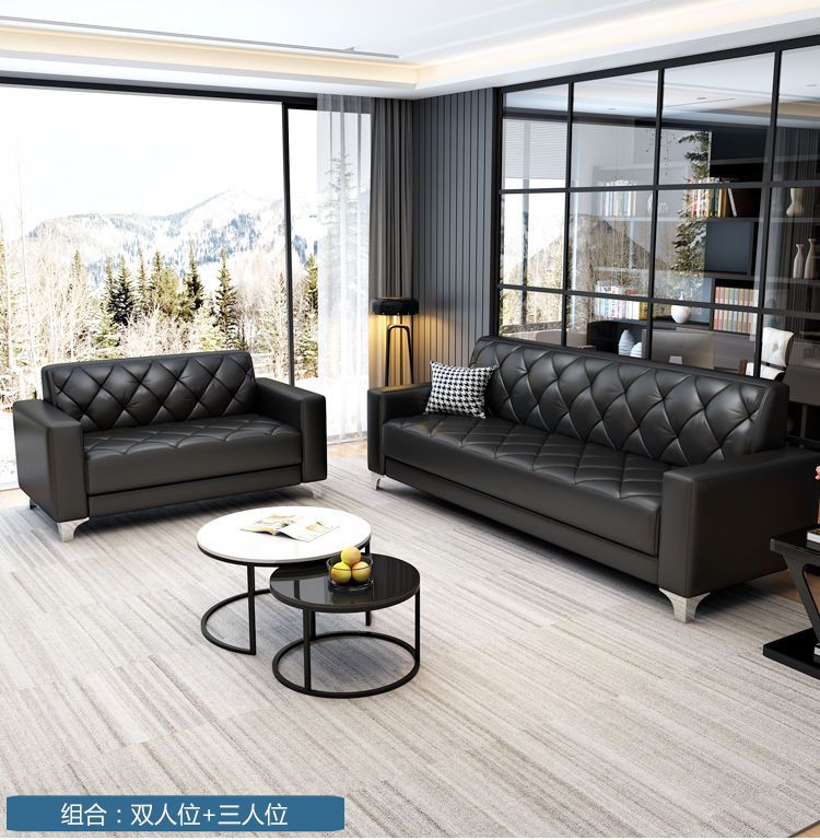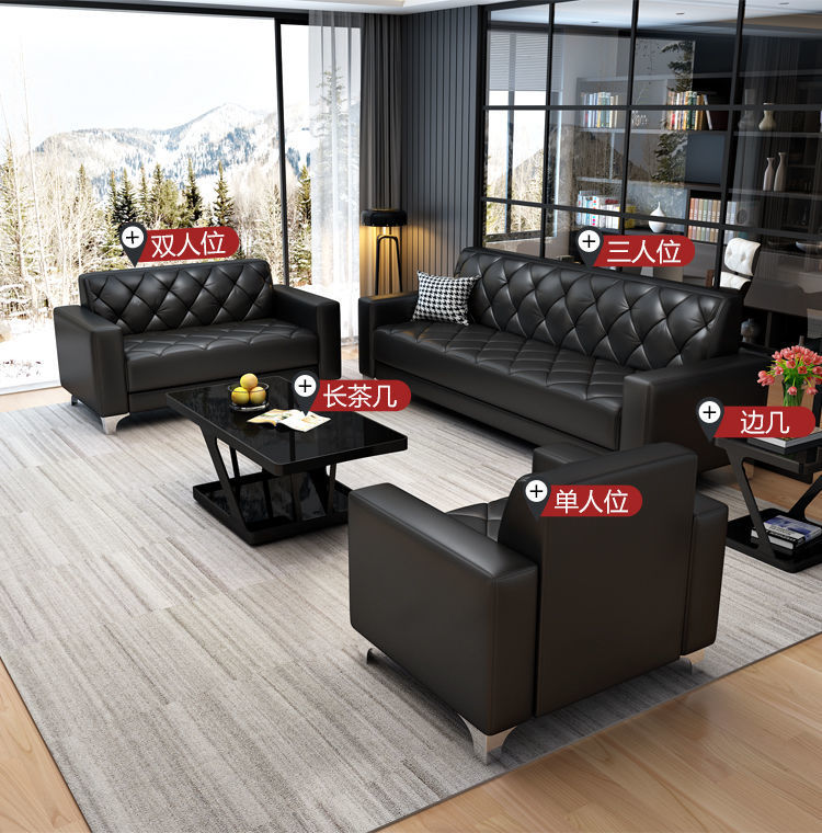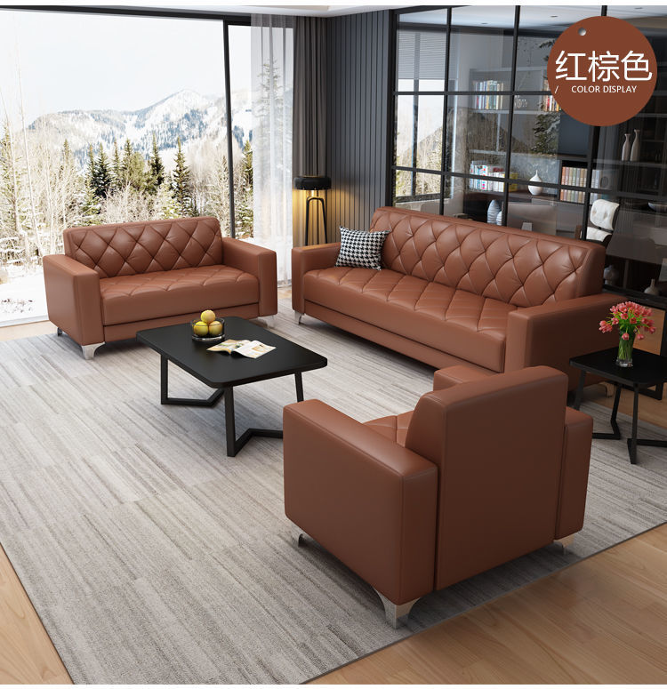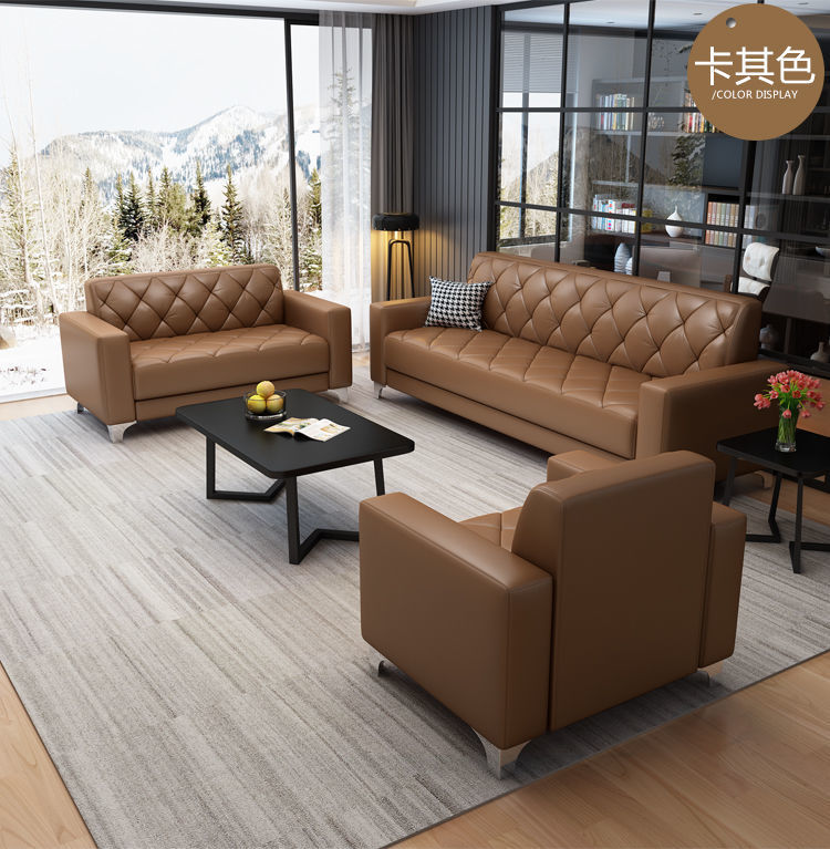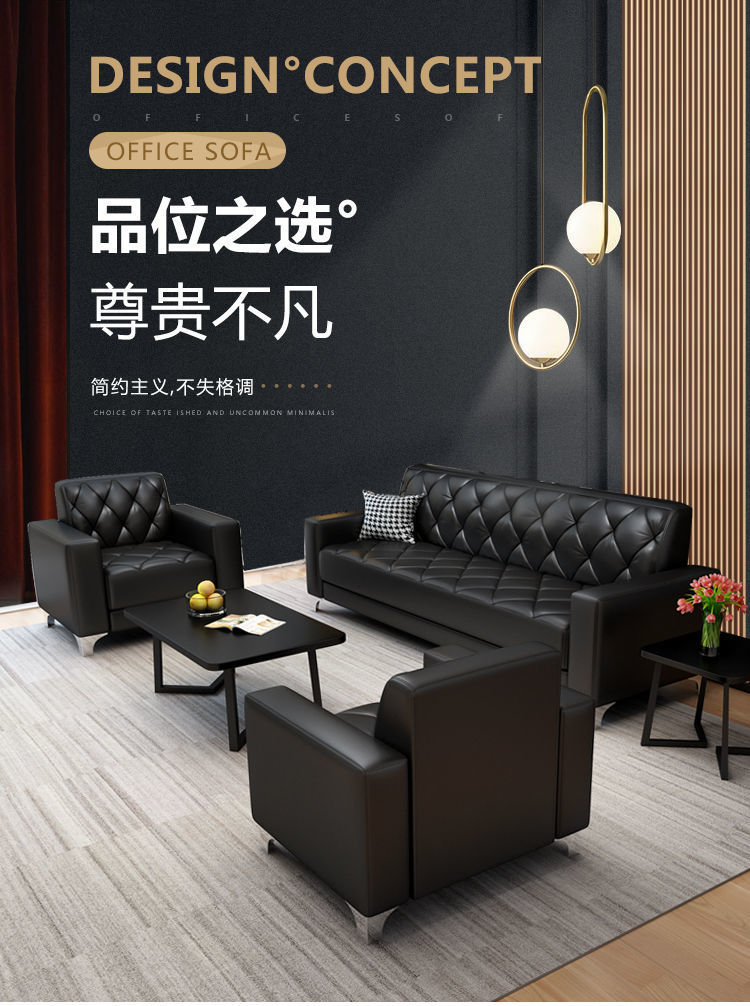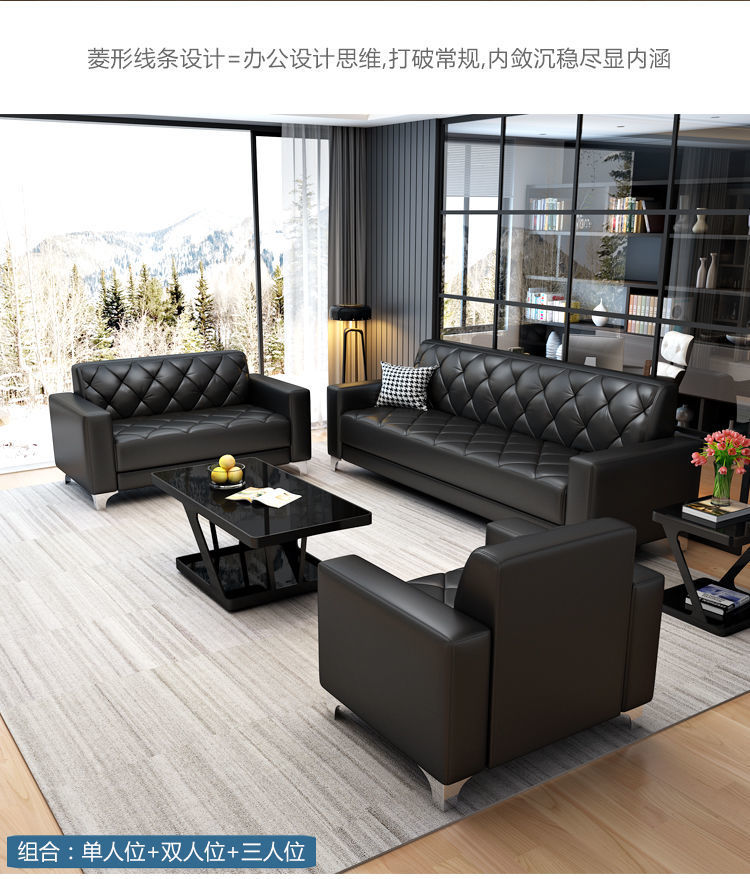 Sofa văn phòng bàn cà phê kết hợp quầy lễ tân kinh doanh hiện đại đơn giản tiếp tân căn hộ nhỏ sofa da văn phòng ba người