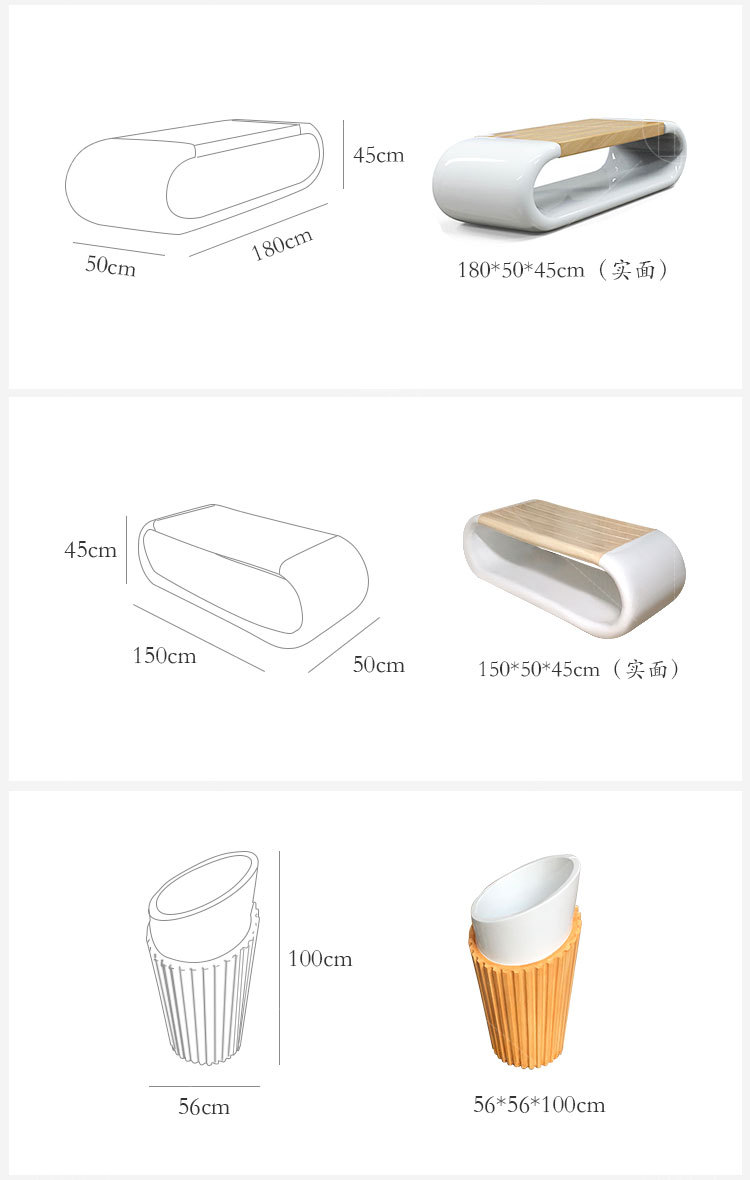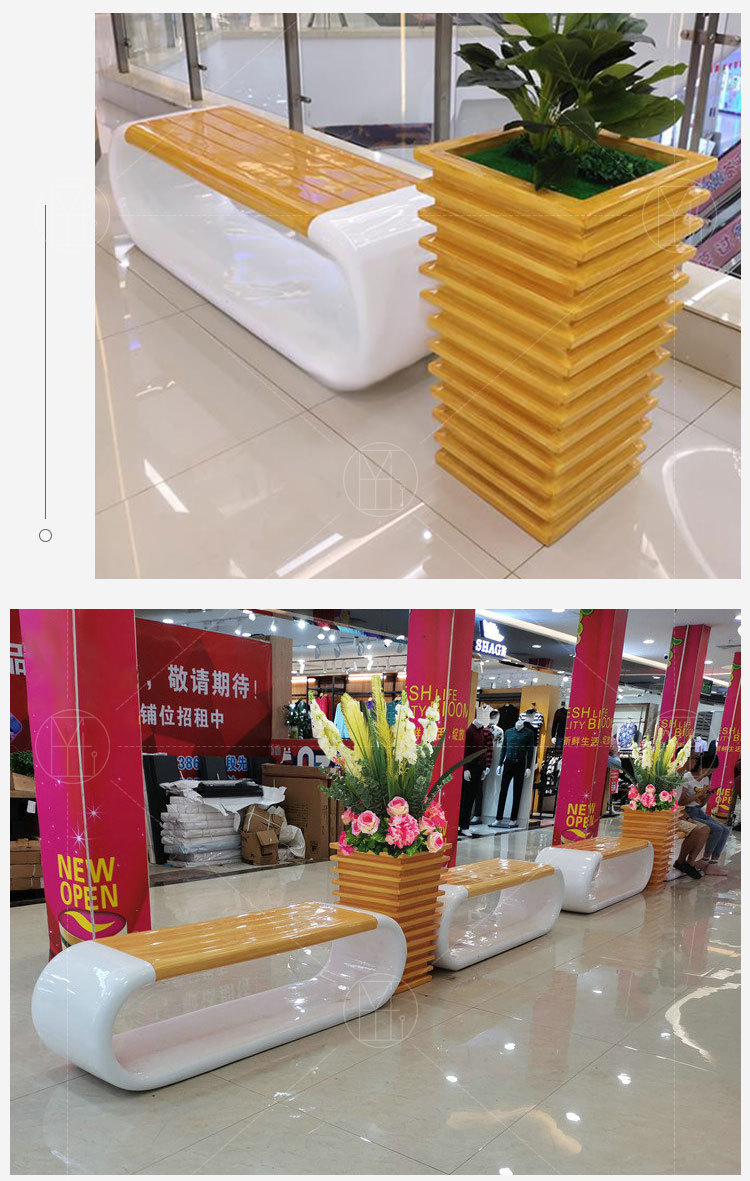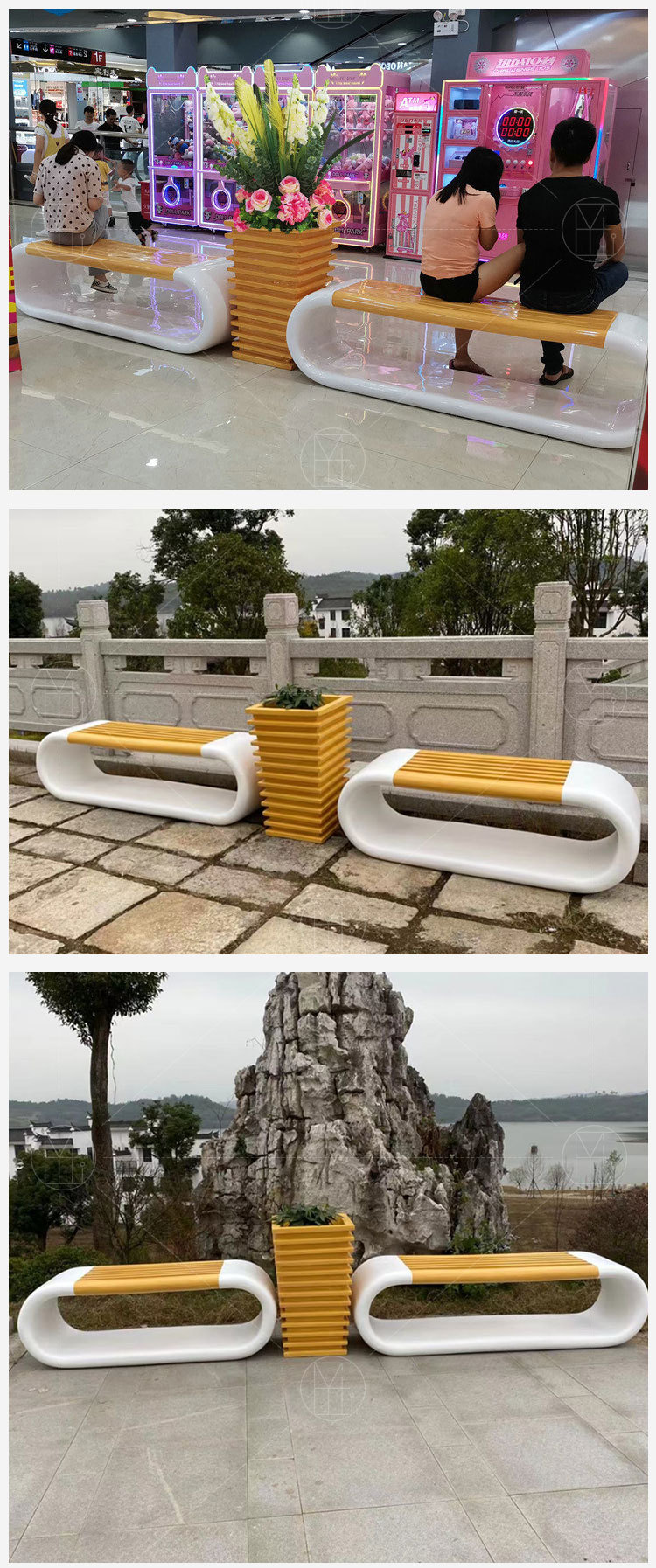 Sợi thủy tinh trung tâm mua sắm ghế giải trí công viên ngoài trời vẻ đẹp sáng tạo Chen ghế đẩu dài sơn vân gỗ ghế vòng ghế đẩu