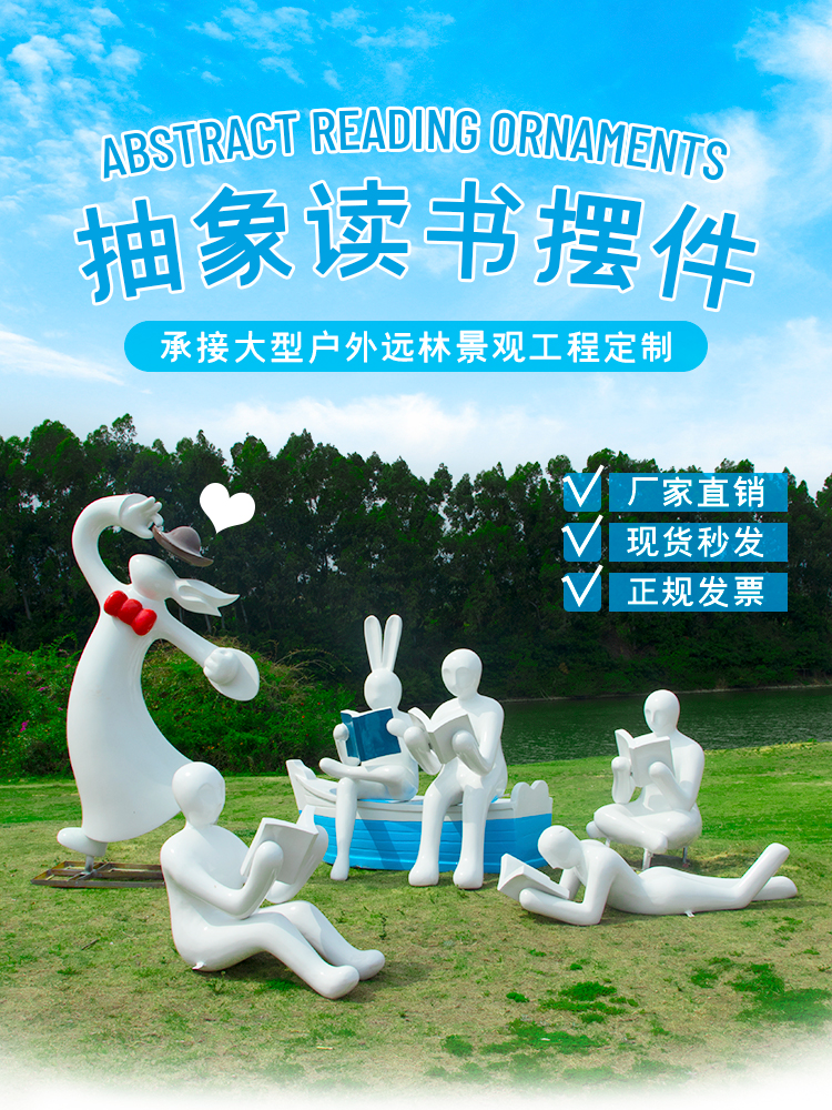 Sợi thủy tinh trừu tượng người đọc thiên thần người đọc nhân vật điêu khắc trang trí trường học bãi cỏ trang trí cảnh quan ngoài trời