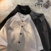 Sơn Sơn nam kẻ sọc ngắn tay áo sơ mi nam 2022 mùa hè mới ve áo làm mới thoáng khí áo sơ mi nam giản dị