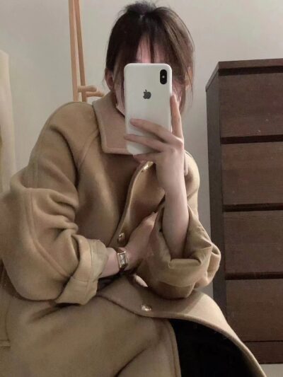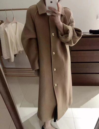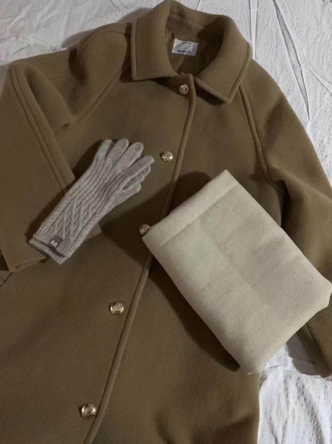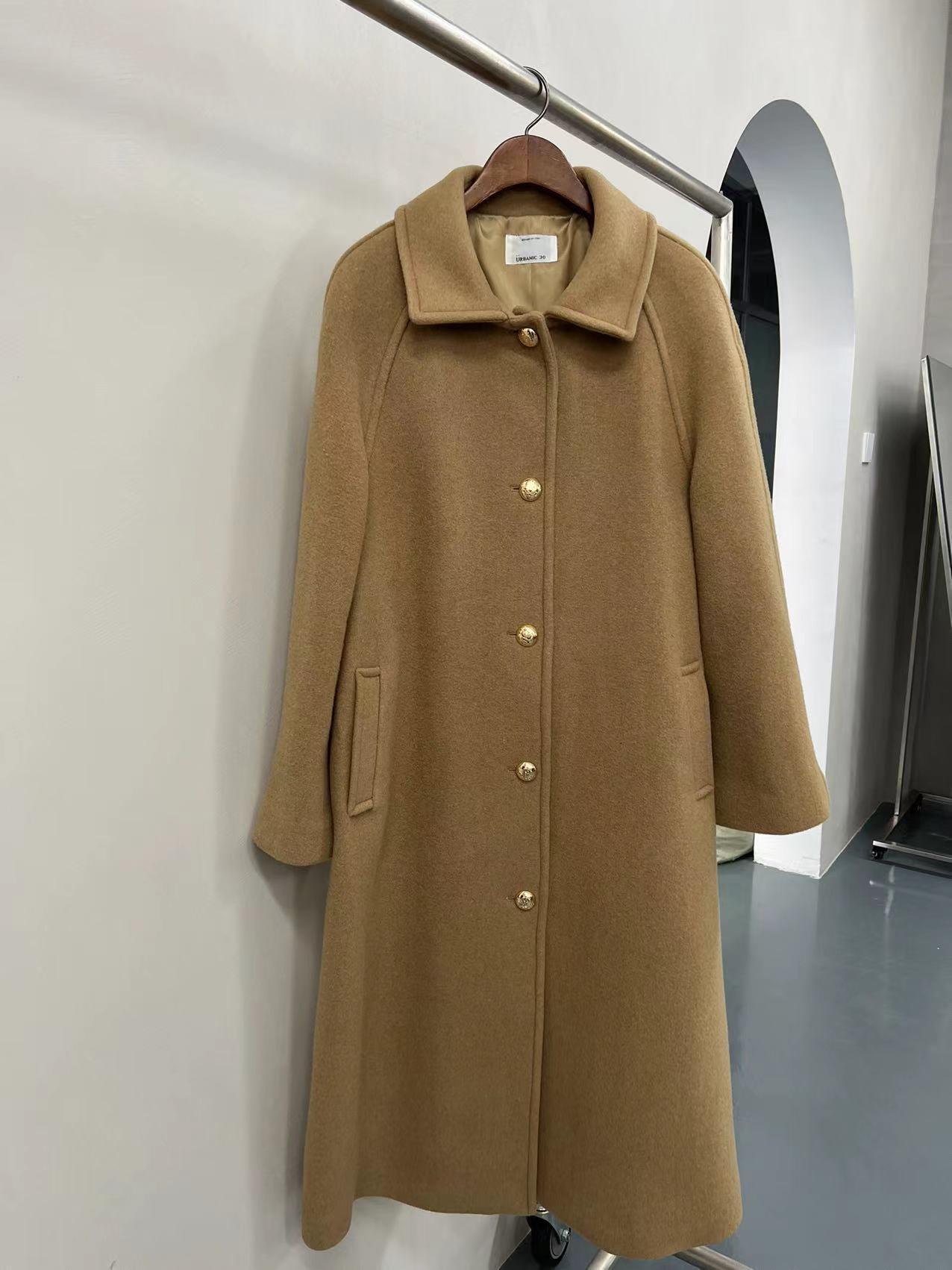 现货~新款韩国urbainc_30复古简单金扣羊毛羊绒大衣~