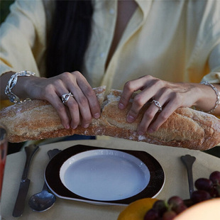 Sterling bạc 925 vòng mã não đen Pháp retro hình cầu vòng mở vòng niche thiết kế ins blogger trang sức