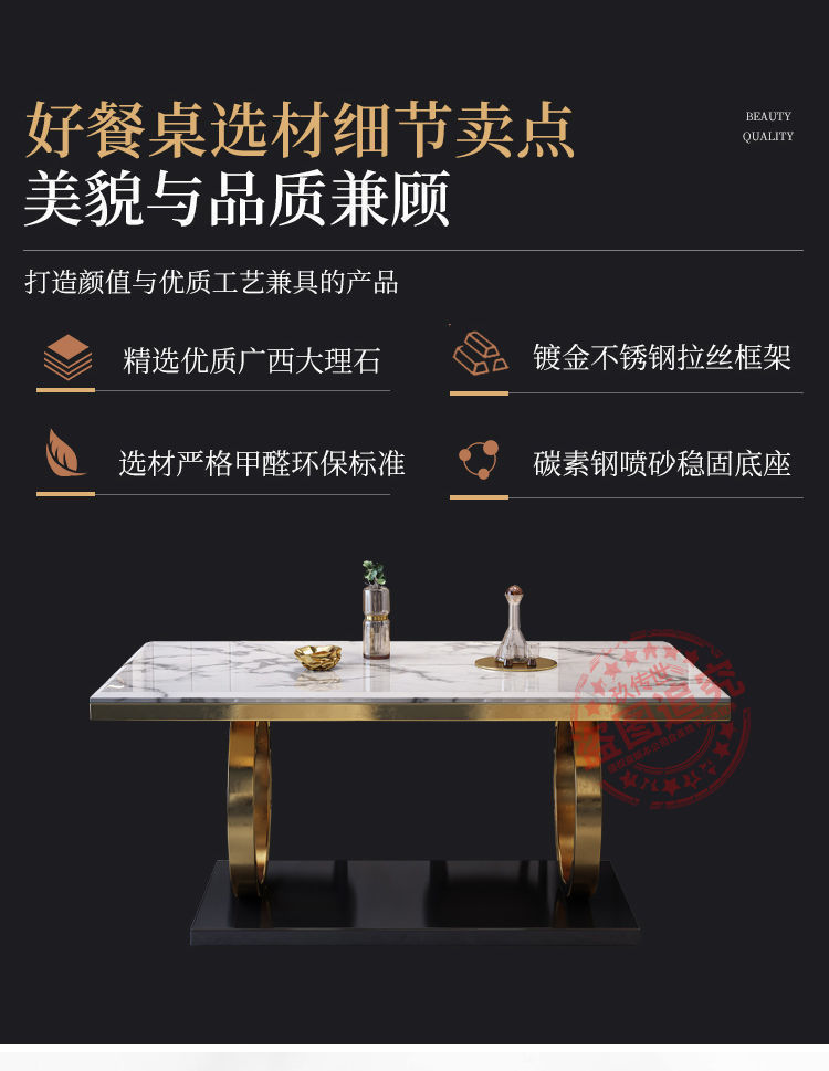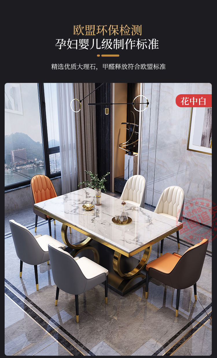 Màu sắc: Bàn hình chữ nhật 130*80CM/Bàn hình chữ nhật 140*80CM/Bàn hình chữ nhật 160*90CM/Bàn hình chữ nhật 180*90CM/Bàn hình chữ nhật 130*80CM + 4 ghế/Bàn hình chữ nhật 130*80CM + 6 ghế/Bàn hình chữ nhật 140*80CM+ 4 ghế/bàn chữ nhật 140*80cm+6 ghế/bàn chữ nhật 160*90cm+4 ghế/bàn chữ nhật 160*90cm+6 ghế/bàn chữ nhật 160*90cm+8 ghế/bàn chữ nhật 180*90cm+4 ghế/180*90cm Bàn chữ nhật + 6 ghế/Bàn chữ nhật 180*90CM + 8 ghế/4 ghế dứa có ghi chú màu tay vịn/6 ghế dứa có ghi chú màu tay vịn/8 ghế dứa có ghi chú màu tay vịn/8 ghế dứa có ghi chú màu tay vịn Ghi chú Gấp: Không Model: / Phương pháp xử lý: / Liệu nó có được cấp bằng sáng chế hay không: Có Liệu nó có được giao đến tận nhà bạn hay không: Giao hàng và lắp đặt tích hợp Liệu có cung cấp dịch vụ lắp đặt hay không: Có Vật liệu trang trí: Bảng nhân tạo Liệu nó có thể thu vào hay không: Không Cho dù đó là bằng máy bơm: Không Chất liệu: Đá cẩm thạch Đối tượng sử dụng : Có dành riêng cho xuất khẩu xuyên biên giới cho người lớn/người cao tuổi/người cao tuổi không? Chất liệu mặt bàn: Đá cẩm thạch Có mô hình 3D không: Không Nó có hỗ trợ tùy chỉnh: Không hỗ trợ tùy chỉnh Liệu mặt bàn có thể điều chỉnh được hay không: Không Số bằng sáng chế: / Cho dù đó là người nộp thuế chung: Không Chức năng: Lưu trữ/Khác/Không gian khác: Cho dù đó là nhà hàng có bếp từ Chức năng: Không Phong cách: Hậu hiện đại Có bàn xoay hay không: Không Yếu tố thiết kế: Thiết kế tổng thể