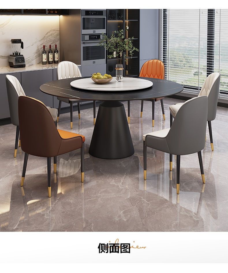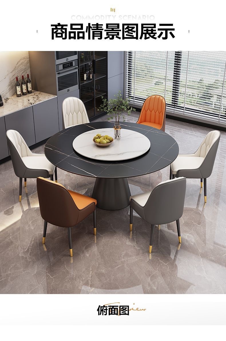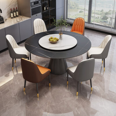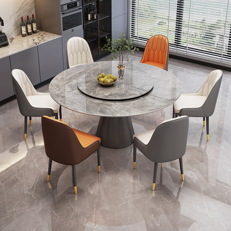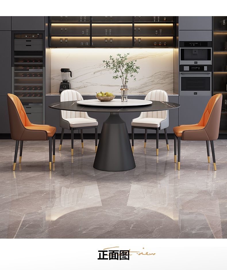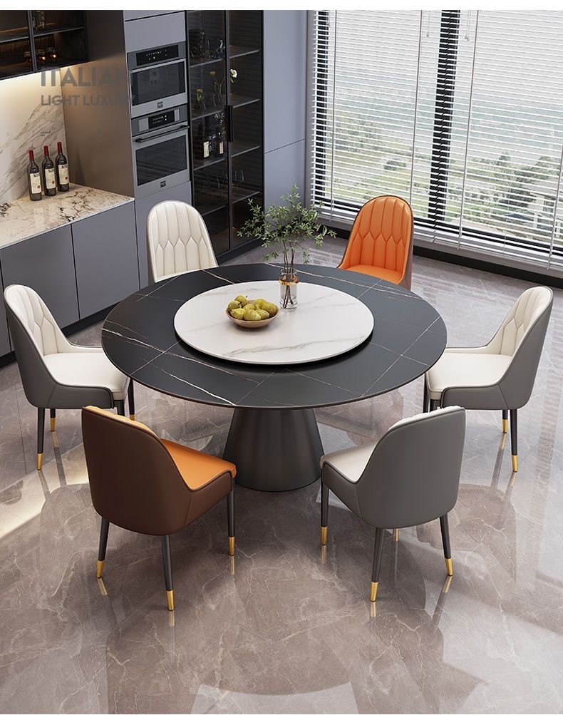 Sự kết hợp giữa bàn ghế ăn bằng đá phiến sáng bóng sang trọng và hiện đại, đơn giản, hiện đại, phòng khách lớn và nhỏ, bàn tròn với bàn ăn xoay