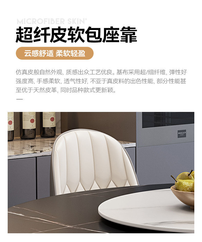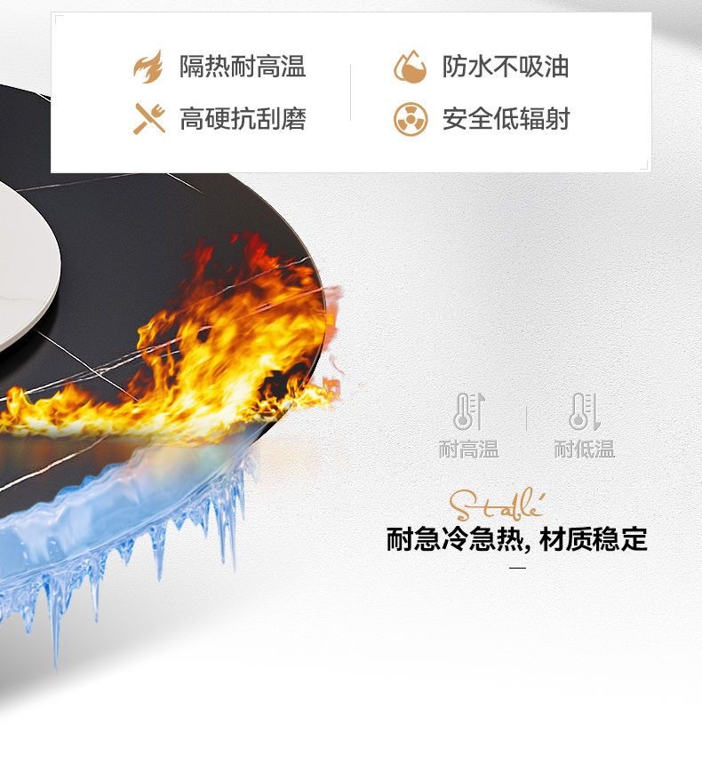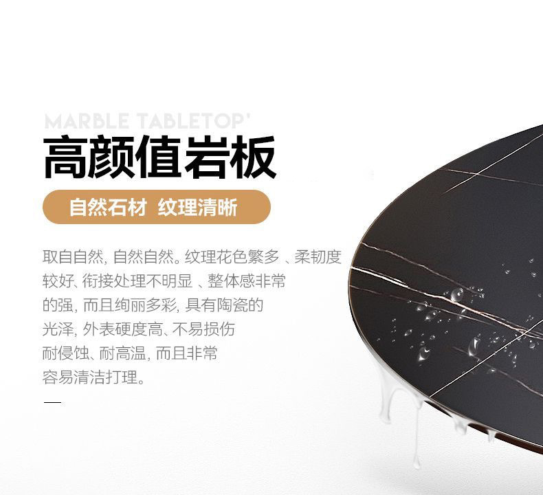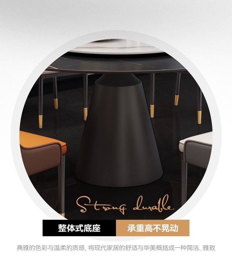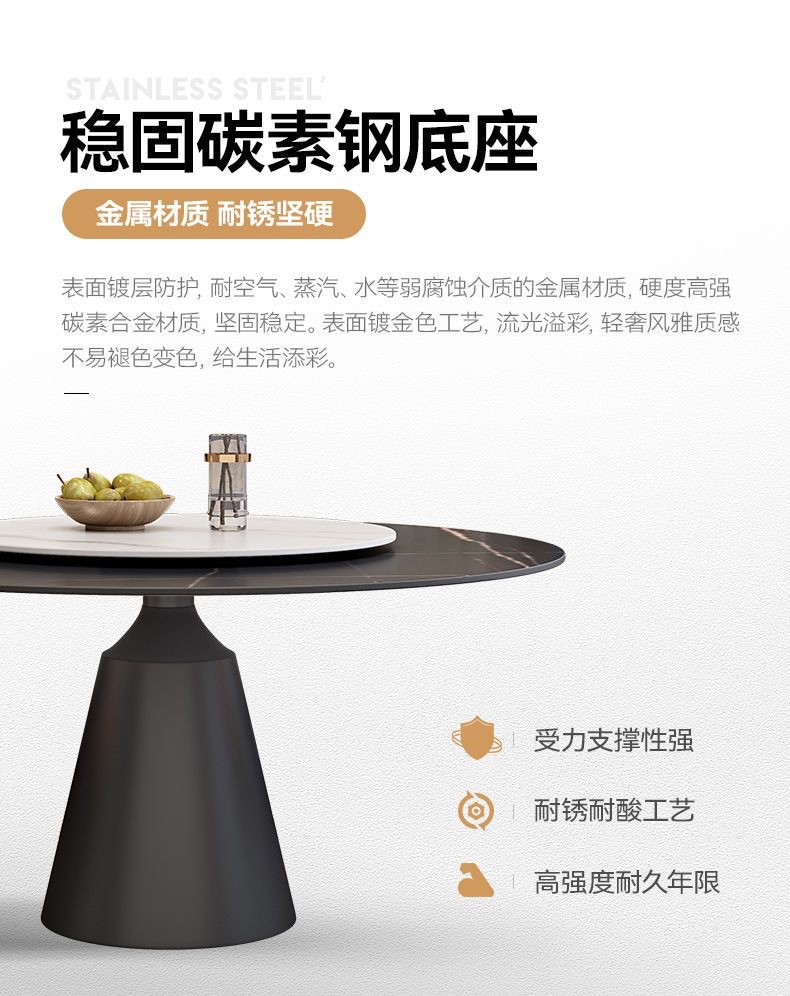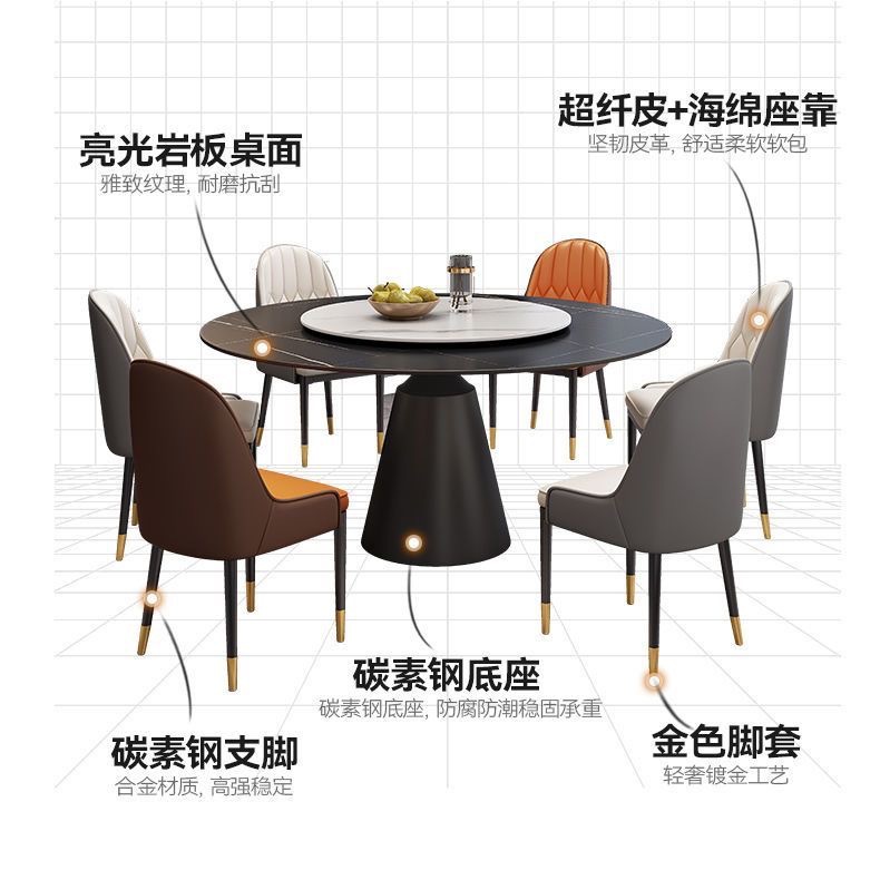 Sự kết hợp giữa bàn ghế ăn bằng đá phiến sáng bóng sang trọng và hiện đại, đơn giản, hiện đại, phòng khách lớn và nhỏ, bàn tròn với bàn ăn xoay