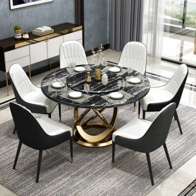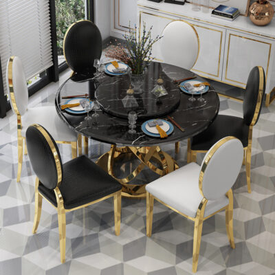 Sự Tinh Tế Của Bàn Ăn Tròn Theo Phong Cách Ý – Kết Hợp Với Bàn Đá Cẩm Thạch Và Bộ Ghế Inox Tròn Như Một Gói