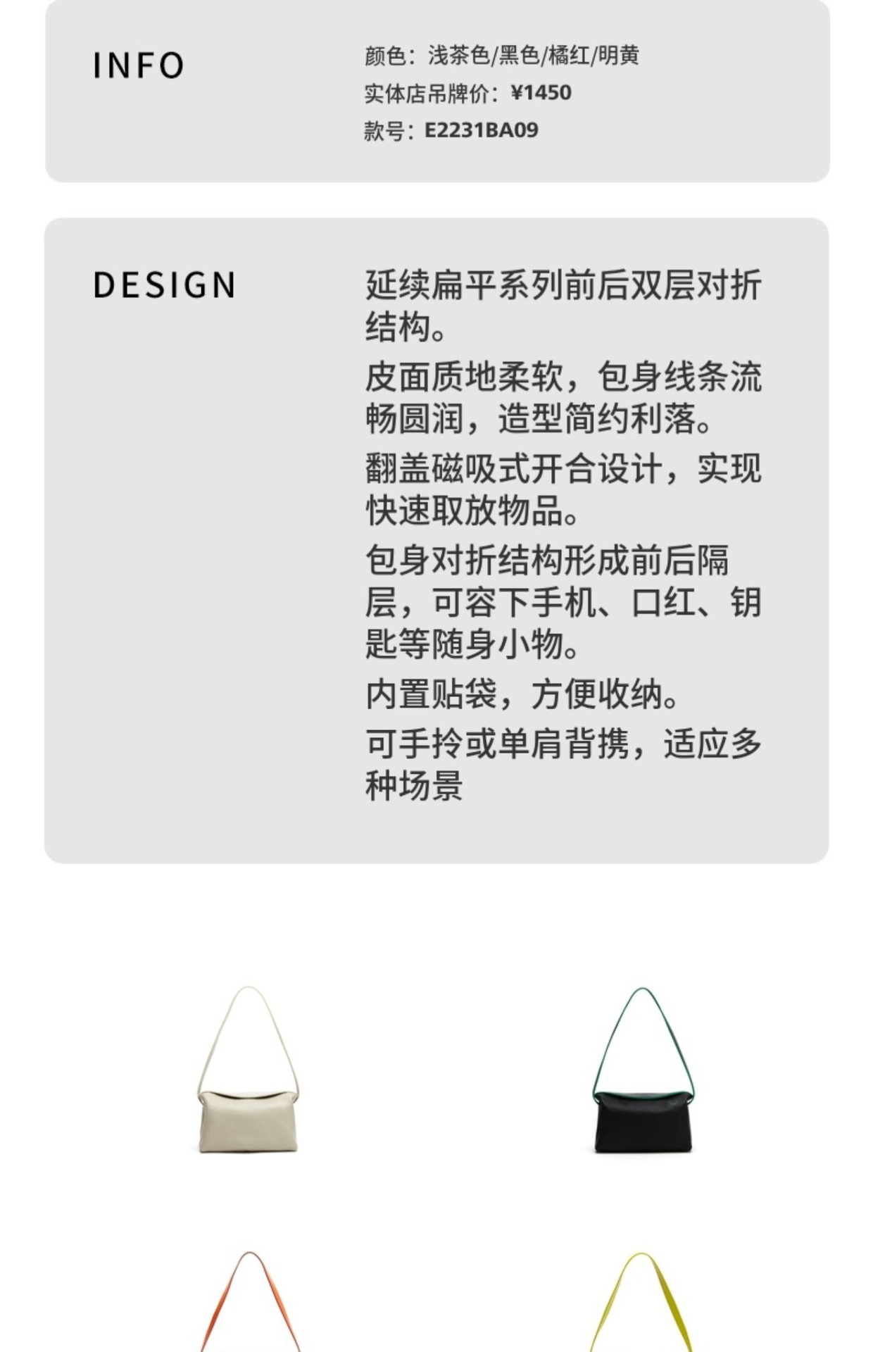 Kích thước hành lý: Da trung bình Đặc điểm: Da bò hai lớp Mùa được liệt kê: Mùa hè 2023 Cảnh áp dụng: Sắp xếp hàng ngày Màu sắc: Đen/Cam/Nâu nhạt/Vàng sáng/Vàng sáng Chất liệu: Da Kích thước: Dài 22,5 Rộng 9 Cao 13 Phong cách: Nách Kiểu túi: Đơn giản thành thị
