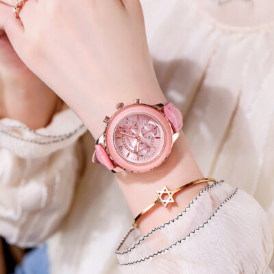 Swarovski Simple Lady’s Watch 6-pin Green Water Ghost Nữ sinh viên Hàn Quốc Đồng hồ đeo tay nữ thạch anh điện tử chống nước