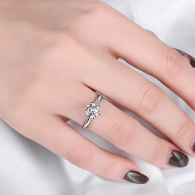 T Họ S925 Nhẫn Bạc Moissanite Nhẫn Nữ Nhẫn Cổ Điển 6 Móng Vương Miện Nhà Sản Xuất Nhẫn Đính Hôn Truyền Hình Trực Tiếp