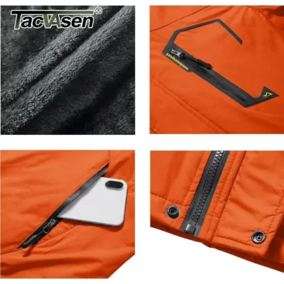 TACVASEN Mùa Đông Nam Trượt Tuyết Áo Khoác Hood Chống Thấm Nước Đi Bộ Đường Dài Câu Cá Du Lịch Áo Khoác Nỉ Ván Trượt Tuyết Áo Khoác Ngoài Trời Áo Khoác Dù Áo Gió