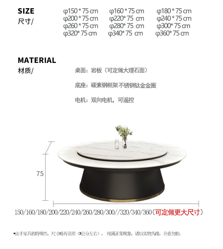 Tấm đá Bàn xoay điện câu lạc bộ khách sạn bàn tròn lớn biệt thự lớn nhà hàng Bàn ăn tròn 20 người 30 người – Bàn ăn nhập khẩu cao cấp