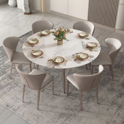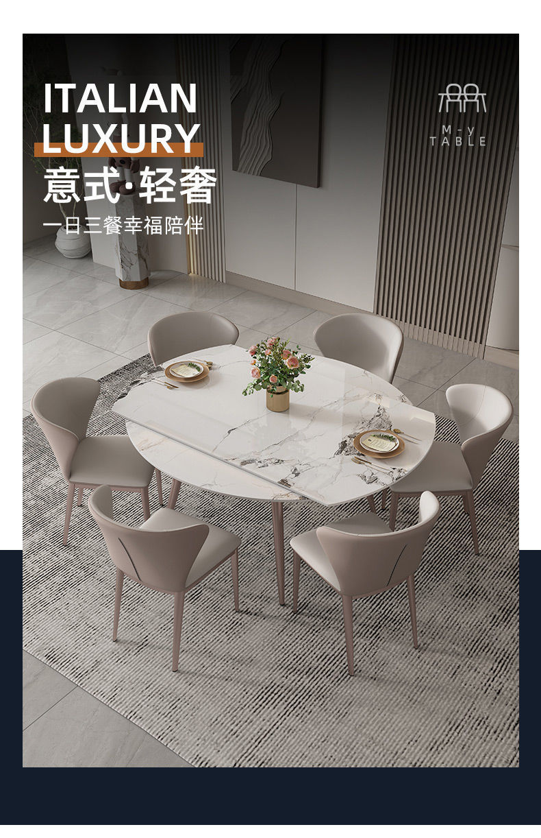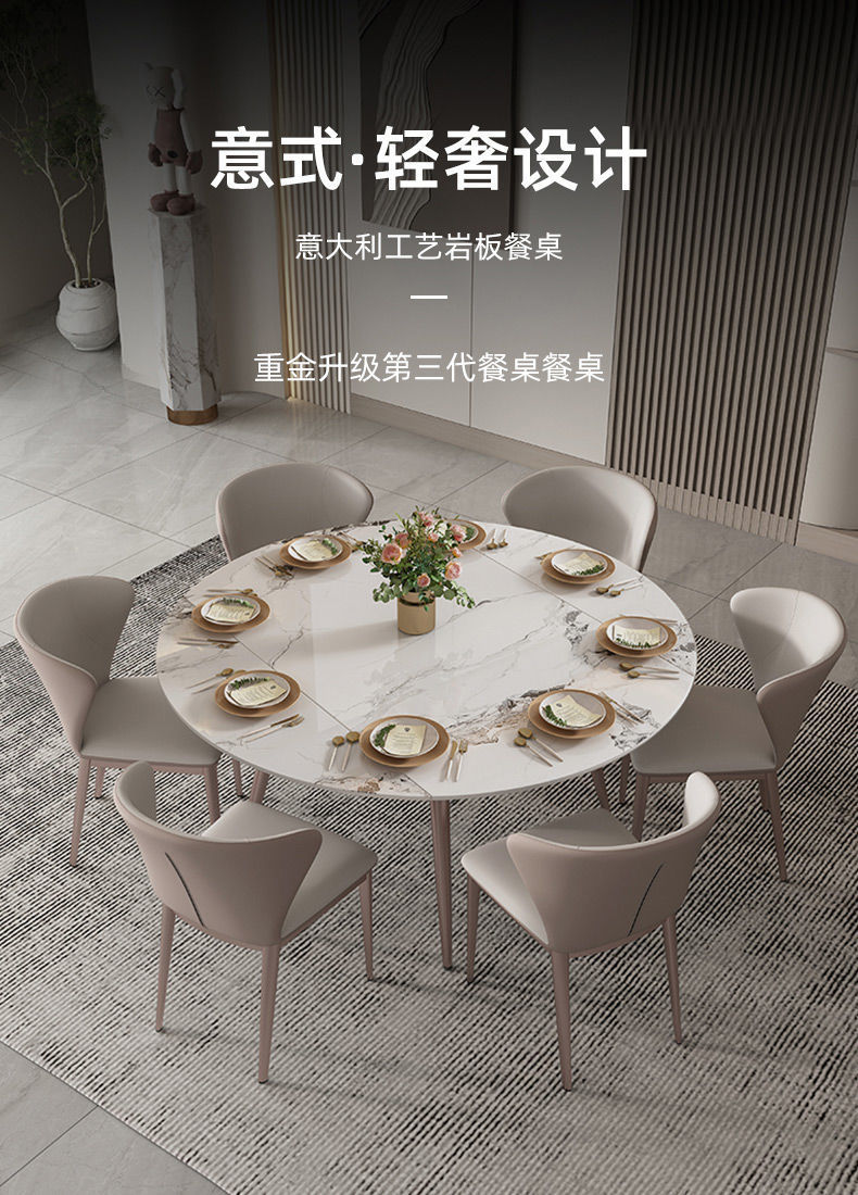 Tấm đá sáng kết hợp bàn ăn và ghế ánh sáng hiện đại sang trọng nhà có thể thu vào căn hộ nhỏ Bàn ăn 8/10 người bàn tròn có thể thay đổi