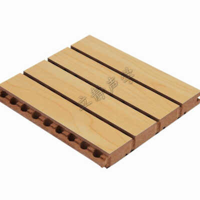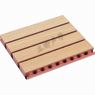 2、木质吸音板以经过特殊处理的高密度板为基材,根据声学原理,正面开槽,背面开孔处理,表面贴有环保饰面,背面有黑色无纺吸音毡,用于控制和调整室内混响时间,消除回声,改善音质,提高语音清晰度,还可以降低室内噪声级,改善工作环境,是一种新型的室内吸音、消音材料。