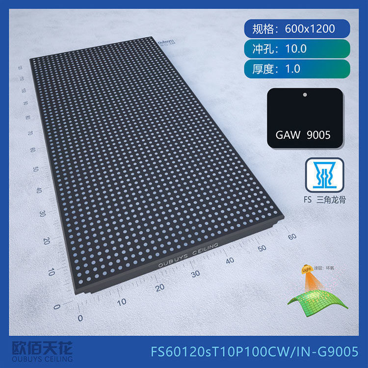 Tấm khóa nhôm 6001200 trần tấm vuông màu xám đen tấm trần kỹ thuật dải kim loại văn phòng