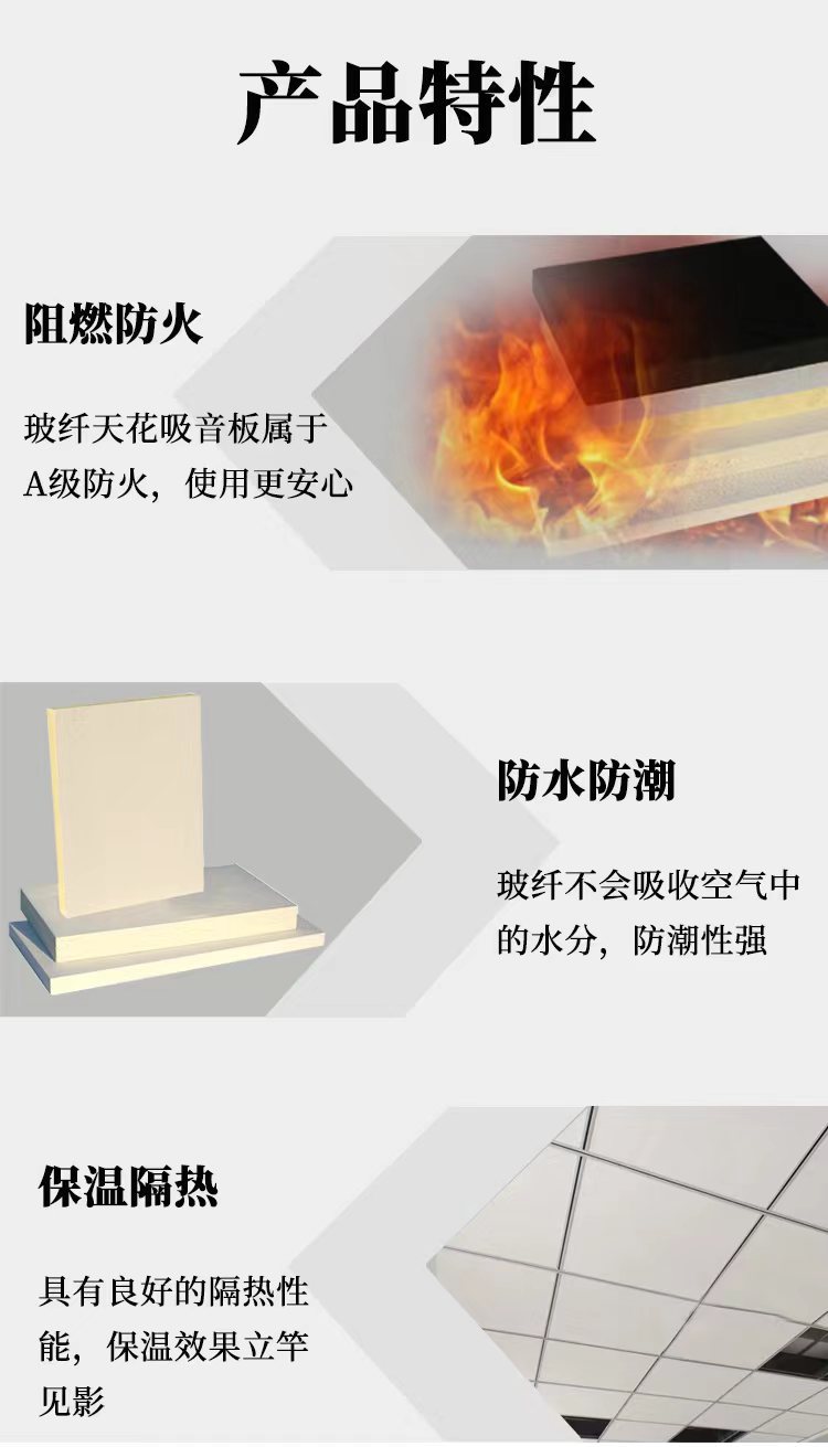 Tấm tiêu âm trần sợi thủy tinh rạp chiếu phim phòng tập thể dục treo miếng trần trang trí vật liệu màu chống cháy tấm cách âm