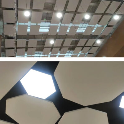 Tấm tiêu âm trần sợi thủy tinh rạp chiếu phim phòng tập thể dục treo miếng trần trang trí vật liệu màu chống cháy tấm cách âm