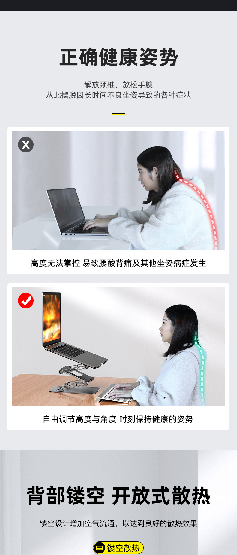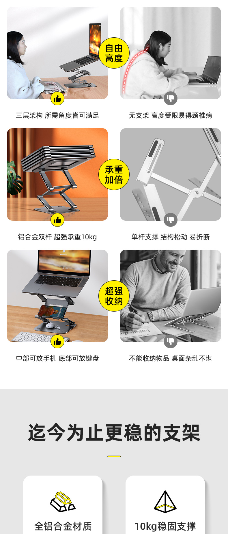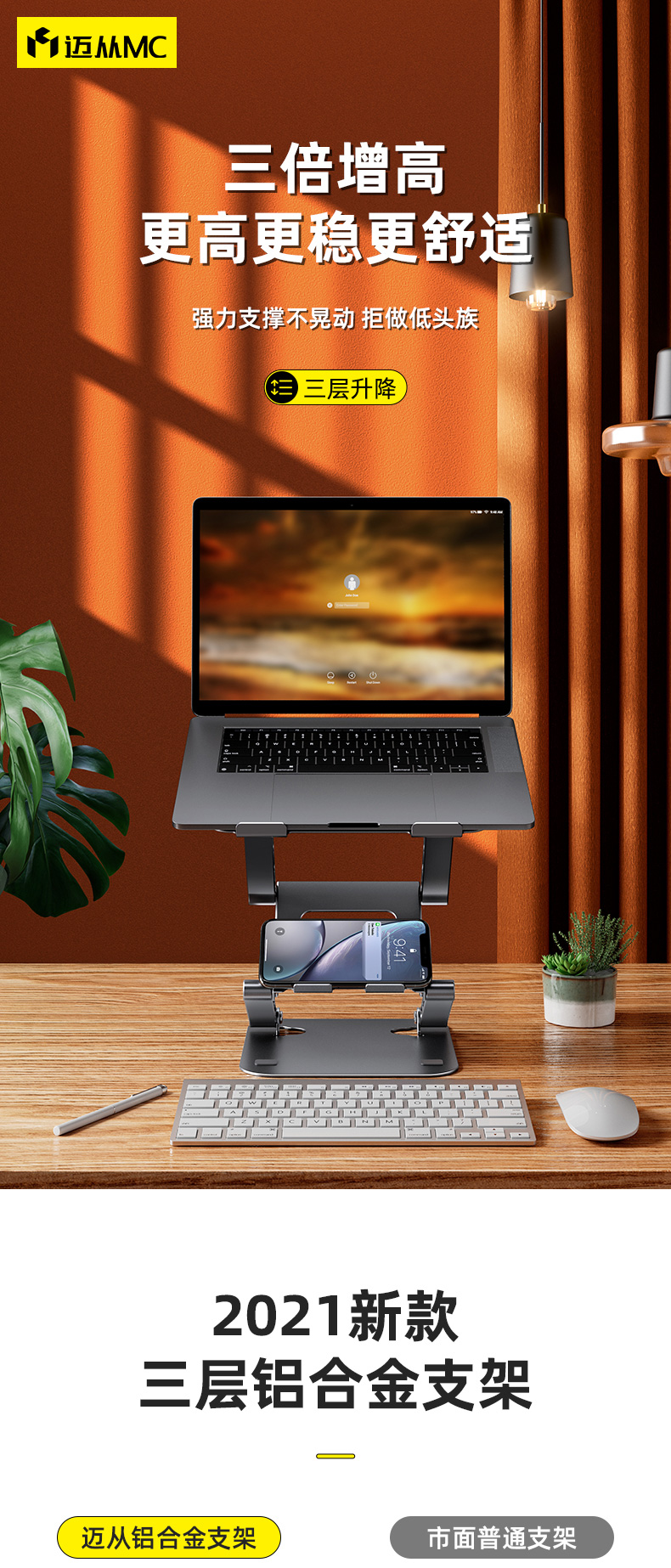 [Tăng chiều cao thật ba lớp] Mai từ treo laptop MC LS515 giá treo văn phòng có thể nâng khung nâng đế máy tính để bàn thẳng đứng phù hợp làm mát macbook di động