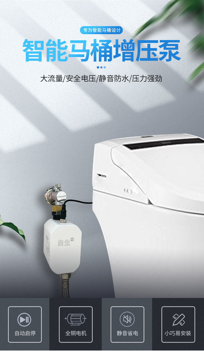 Tankless thông minh bơm tăng áp hộ gia đình tự động nhỏ im lặng không thấm nước 24V nhà vệ sinh thông minh điều áp xả nước