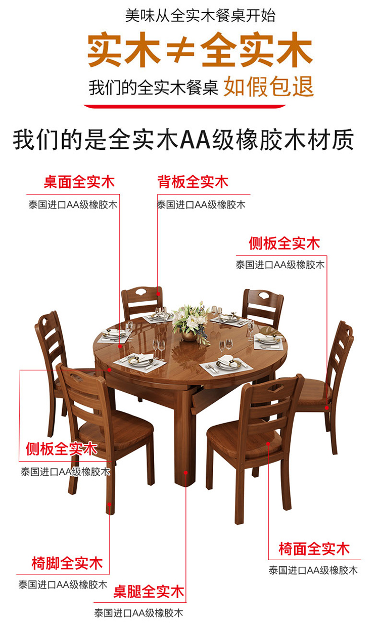 Tất cả bàn ăn bằng gỗ nguyên khối và ghế kết hợp bàn ăn gấp ống lồng bàn ăn tròn 10 người căn hộ nhỏ hộ gia đình bàn ăn tròn biến đổi – Bàn ăn nhập khẩu cao cấp