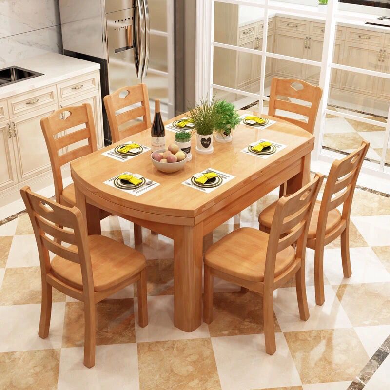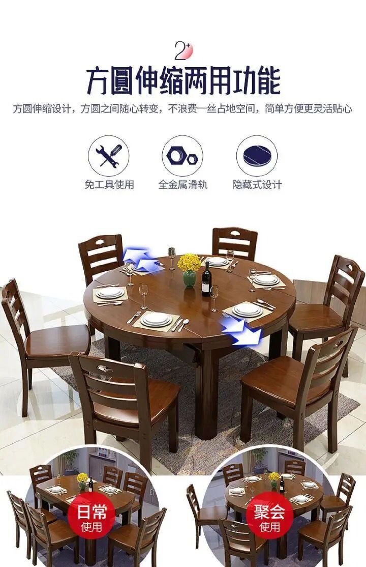Tất cả bàn ghế ăn gỗ sồi nguyên khối kết hợp vuông và tròn hai mục đích kính thiên văn gấp người bàn ăn căn hộ nhỏ