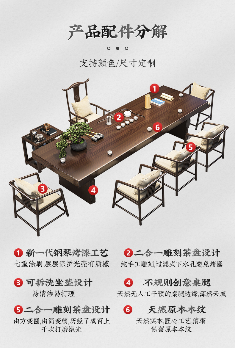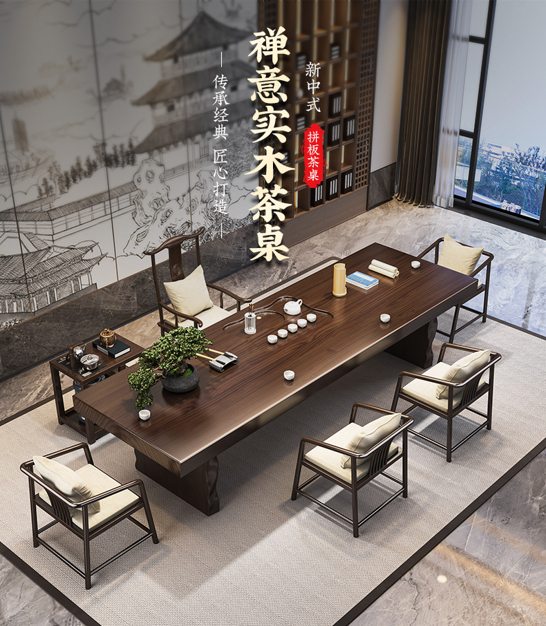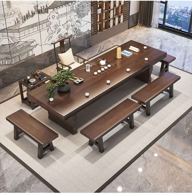 Tất cả bàn trà bằng gỗ nguyên khối, bàn trà phòng khách gia đình, bàn trà Kung Fu kiểu Trung Quốc mới kết hợp, bàn trà văn phòng trong một