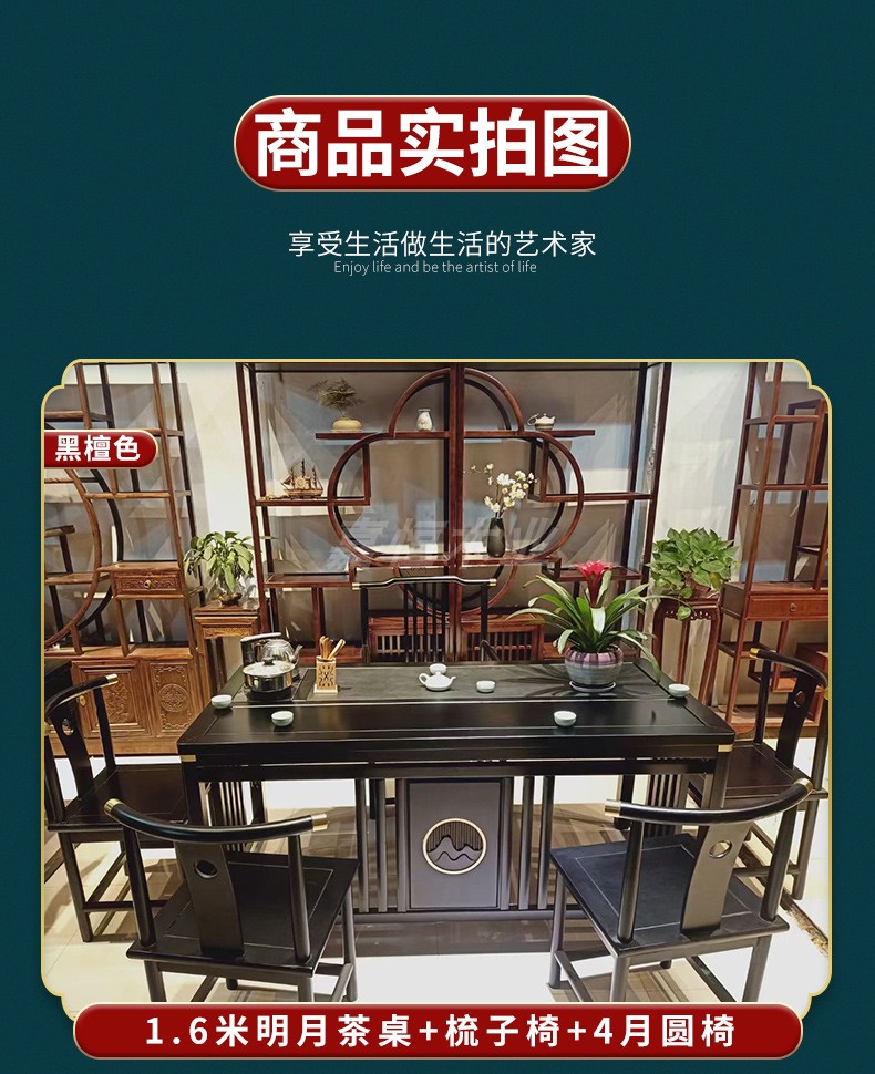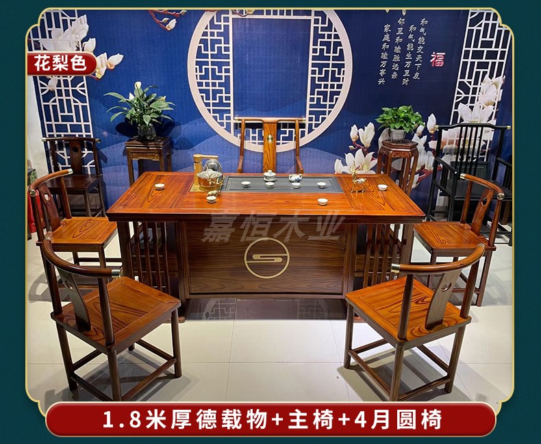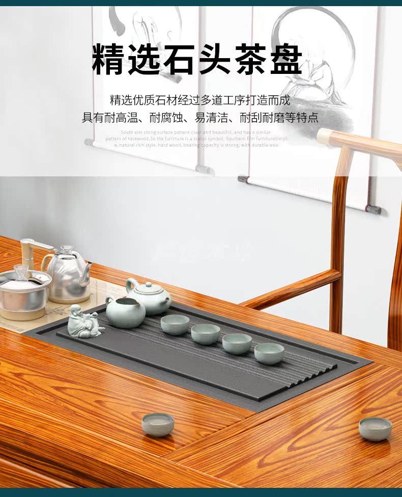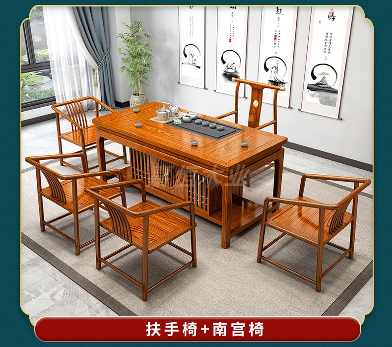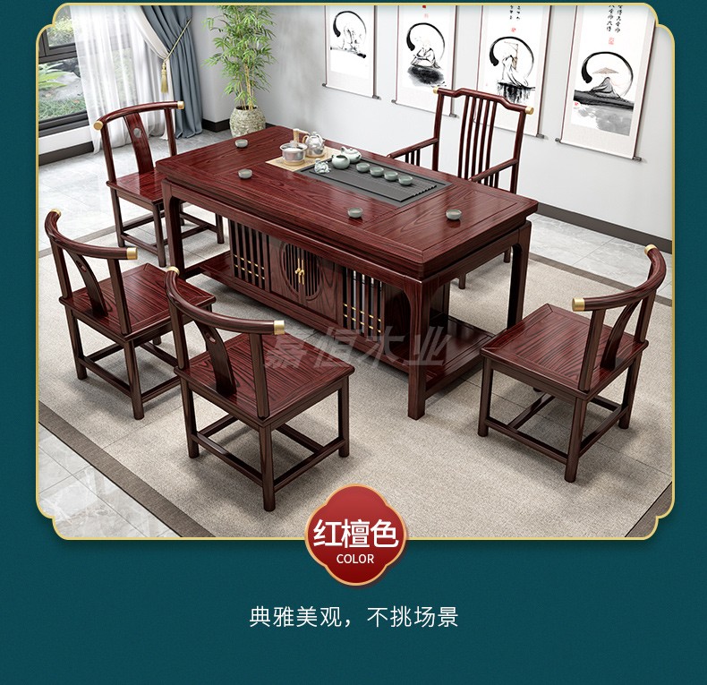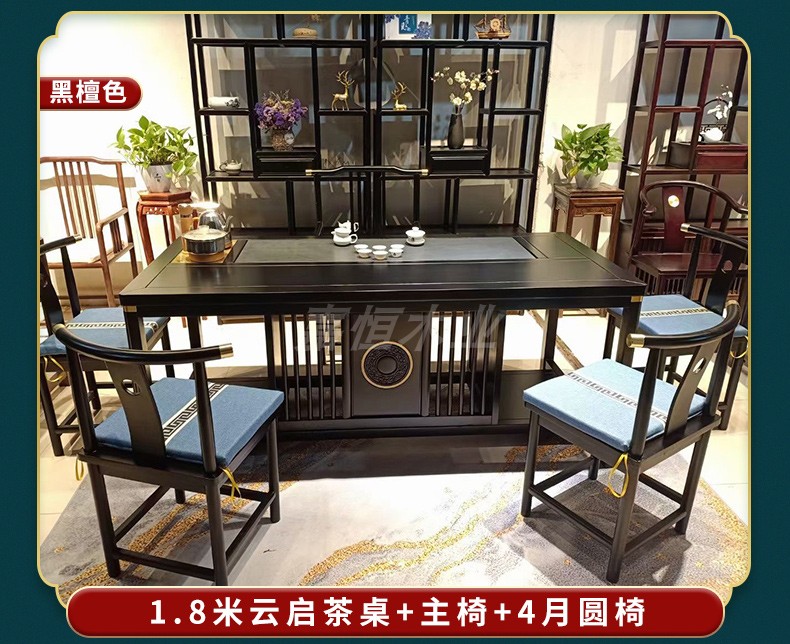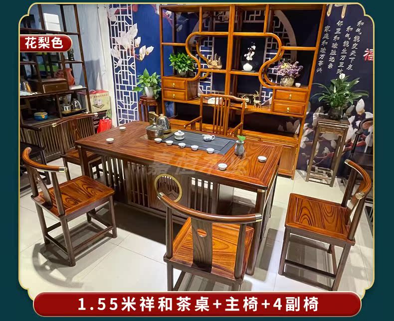 Tất cả bàn trà bằng gỗ nguyên khối và ghế kết hợp phòng khách kiểu trung quốc mới bàn trà nhà kung fu bàn trà văn phòng bàn trà ánh sáng bàn trà sang trọng