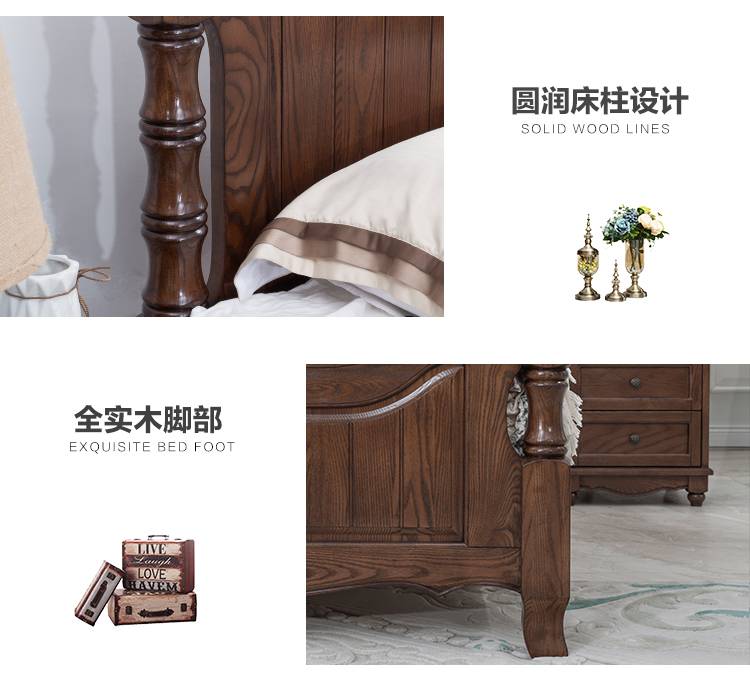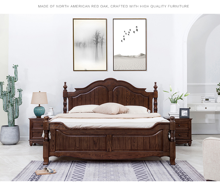 Tất cả bằng gỗ đặc Giường đôi kiểu Mỹ lưu trữ 1,81,5 mét giường cưới đơn giản nội thất phòng ngủ chính đơn giản bằng gỗ sồi Mỹ thuần túy bằng gỗ sồi đỏ